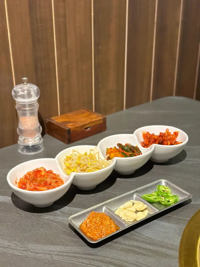 🇰🇷 前菜入座嘅時候每一枱都會先送上4款前菜(泡菜、咸酸菜,大豆芽同醃蘿蔔)🐖 招牌牛油熟成厚切豬五花($238)豬五花經過牛油熟成處理,連同香菇,蔥放系砧板上面上枱,好特別;職員先將牛油切走,再將整嚿五花放喺燒烤爐上面將底面各燒3分鐘,然後再剪細,將底面各燒多2分鐘就食得;豬五花肥瘦分明,燒完之後更係脂香四溢,正👍🏻🐟 韓式燒鰻魚(4件)($148)不愧為佢哋嘅招牌之一,鰻魚厚肉仲要無骨,職員仲好好咁幫我地燒埋,先將魚肉個面燒4分鐘,然後反轉燒4分鐘,加上鹽調味再燒多2分鐘就食得,就咁簡單用鹽調味已經好皮脆肉嫩入味,如果想再惹味啲可以點埋鰻魚燒汁一齊食🍍 鮮菠蘿($38)菠蘿預先幫我哋切好左一塊塊,燒起來好方便,而且好鮮甜多汁,解左頭先食肉嘅油膩🫔 脆炸紫菜粉絲卷(4件)($38)用紫菜包住滿滿嘅韓式粉絲,沾上薄薄嘅脆漿炸成,香脆但味道偏淡,要點埋韓式甜辣醬一齊食先夠惹味🍹 百香果梳打($38)百香果梳打甜度同冰量都係固定,但飲落口甜度適中,好冰凍清爽,仲要有700mL咁大杯🍊 柑桔梳打($20)…查看更多