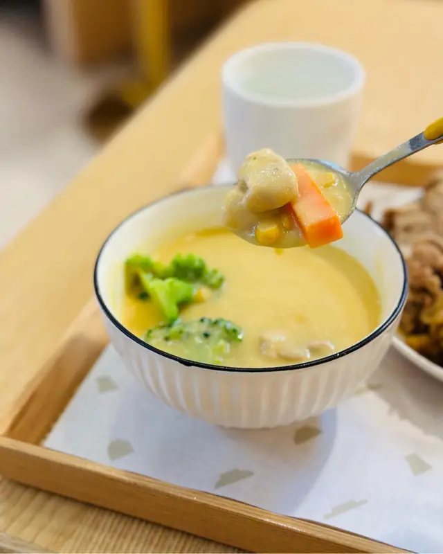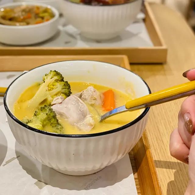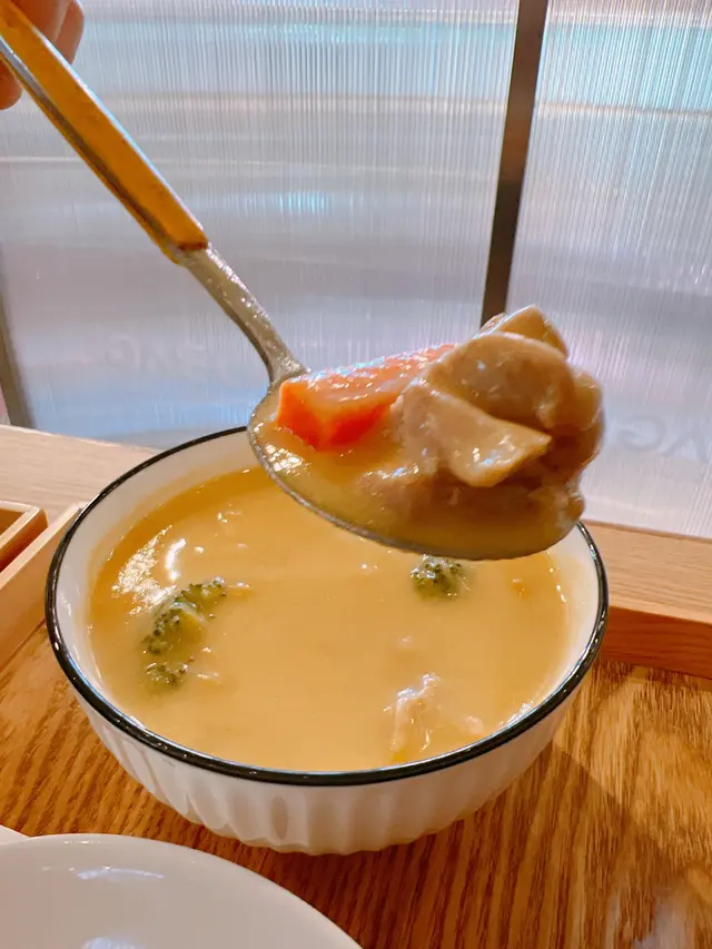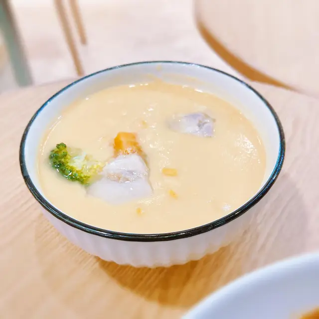 想試好耐既日式定食餐廳, 見每間分店都幾多like 👍🏻 今次叫左主菜定食, 湯+主菜+米飯+茶 HKD 89 ,份量都幾多!北海道產甜粟雞肉豆乳濃湯 🌽 : 真係幾大碗, 又多料~ 係我中意既日式粟米湯,甜甜的,(不過你問我罐頭湯都可以係咁好飲😛) ,雞肉唔滑,有雪藏味。 主菜🍲:豚肉壽喜燒— 通常壽喜燒都係鍋上, 呢個係一碟。 味道正常, 有豬肉,菇,芋絲,同豆腐。 豬肉比較柴, 豆腐都係皺皮豆腐, 中式啲紅燒豆腐都入面滑身, 呢種唔係…. ummmm 總括係我自己都煮到! 飯🍚: +HKD20 叫左北海道蟹膏盤肉味噌飯, 我以為係成碗飯有蟹膏煮過個種, 原來只係有一細舊仔味噌醬係面🥲 咁樣就要加廿蚊? 味道都正常, 啲飯都係日本米, 但係係隔夜飯‼️又硬又唔熱, 好失望😞 喫茶店雞蛋布丁🍮配豆腐雪糕🍧 HKD49 呢個就唔錯! 布丁蛋味幾重, 軟硬適中, 係黏黏地個種口感~ 豆腐雪糕幾香, 仲有唔少焦糖漿配襯埋, 呢個我收貨🧡連埋加一,一個人食lunch都成HKD174 ,嚇左嚇, 份量雖多但定食質素普通:/…查看更多