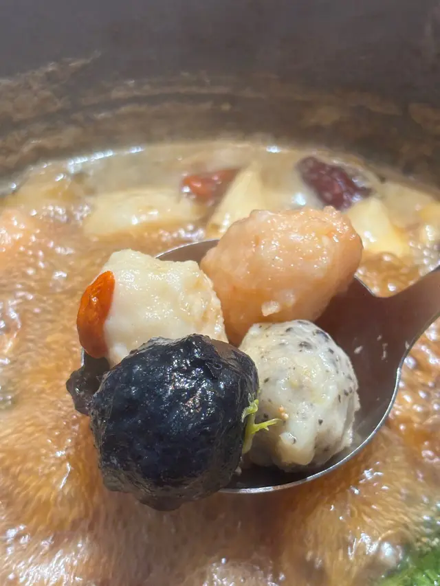 喺石門地鐵站旁邊商場一樓角落,有間高質雞煲,提供多款風味,之後仲有多種火鍋配料揀。服務主動又親切,餐廳夠晒寬敞,通風好好,唔驚食完衫褲一陣味。.🌟花雕藥膳雞煲花雕藥膳雞煲,生雞上枱即場煮。藥膳香氣濃郁,花雕酒味醇厚突出。雞肉煮完口感嫩滑,充分吸收湯汁精華,入味十足。.🌟牛舌心牛舌心用花雕藥膳湯底淥,藥膳香氣溫和。湯底醇厚,帶淡淡酒香。牛舌心切得厚薄適中,口感爽脆彈牙,而且吸收咗湯汁精華,風味獨特。.🌟水魷花雕藥膳湯煮水魷,湯底酒香醇厚,當歸藥材味突出。水魷質地新鮮,口感爽脆彈牙,喺湯裡面輕輕淥一淥,鮮味同藥膳風味結合得啱啱好。.🌟豬頸肉片豬頸肉片油脂豐富,煮耐咗都唔韌,口感軟嫩中帶彈性,充分吸收咗湯汁,食落溫潤唔膩。.🌟十優狀丸呢盤丸類拼盤真材實料。黑松露墨魚丸香氣突出,墨魚丸彈牙;蝦丸鮮甜,入面有墨魚粒嘅墨魚丸口感豐富。整體口感紮實,風味十足。.🌟椰青椰青清涼解渴。椰青水清甜冰爽,帶天然微酸,生津止渴。椰肉白皙軟嫩,可以用匙羹輕鬆刮出嚟,口感滑溜,清香自然。.🌟龍鳳檸樂香港經典特色飲品,鹹酸交織,巧妙平衡可樂嘅甜膩,口感層次豐富,生津解渴。…查看更多