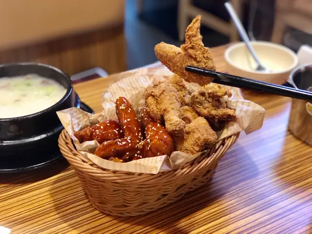 聽聞呢間炸雞啤酒係第一批黎到香港既店🥳之前已經有朋友推介過話好好味,今日終於可以試到🫶🏻果然無令我失望😋點左3樣野食。半半炸雞(原味+辣味)$168原味係乾身脆卜卜辣味係醬汁滿滿,本人比較鍾意食脆卜卜香口嘅炸雞雞肉好滑,食到停吾到口⚠️再來韓式炒豬肉粉絲$128 (可選牛肉)相比起出面嘅炒粉絲佢濃味得黎又唔會太咸或太甜又吾會太油,有啲會好大陣油益味….呢個味道啱啱好☺️☺️☺️同埋好足料~ 人蔘雞湯$198雞好嫩口又大隻,好多肉人蔘味唔算好重,入邊仲加咗啲雞蛋絲,人蔘補氣血,女仔真係要飲多幾碗🥰整體3款都好好食😊老闆又好好人不斷問我地夠吾夠味,又比泡菜我地送湯教我地食炸雞就配酸蘿蔔。👍👍…查看更多