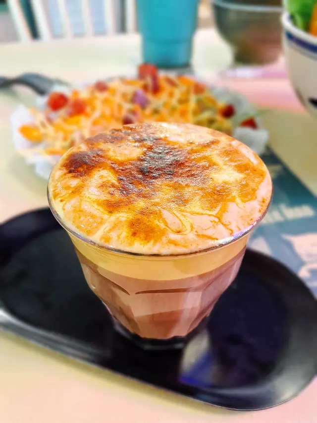 這間越南咖啡廳位於旺角的彌敦道726,主打南越Fusion菜,搜羅具南越特色的街頭美食及飲料。店內環境寬敞舒適,裝潢時尚休閒,擺放綠色植物及巨大熊公仔,更有不少趣味漫畫。凡惠顧可獲印花卡一張,每消費$100可享一個印花,累積不同數量的印花有不同優惠。秘製烤萋葉雞翼(4隻) - $52酥脆的雞翼毫不油膩,有香草的獨特香氣,咬開雪白的雞肉嫩滑多汁。脆米紙薄餅 - $58香脆可口的薄飯鋪滿紅蘿蔔及青瓜絲,更有越南臘腸粒增添油香,淋上沙律醬好清新。惹火上身鹹檸豬頸肉 - $70一片片飽滿的豬頸肉有豐富的油脂和肉汁,鹹檸汁平衡膩感,更有席前點燃表演,有淡淡香草味。NVN咖啡骨 - $78綿密細膩的棉花糖,淋上越南咖啡濃郁香醇,與醬油形成豐富層次,多塊豬軟骨軟腍多汁,連軟骨也能嘴嚼。越式咖喱軟殼蟹配蒜茸法包(4件) - $108金黃酥脆的軟殼蟹有甘甜多汁的蟹肉之餘,又有甘香的蟹膏,溫潤順滑的越式咖喱有椰奶的香甜和辛香料的微辣,酥脆的法包可蘸上咖喱汁。班蘭奶蓋咖啡(冰) - $45濃稠的班蘭奶蓋有獨特的香氣,越南冰滴咖啡冰涼爽口。南越蛋咖啡(熱) - $38有點像焦糖燉蛋,有層焦香的糖衣,又有濃郁的蛋香,熱咖啡風味較濃厚。…查看更多
