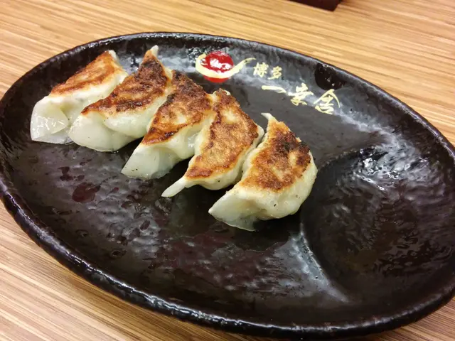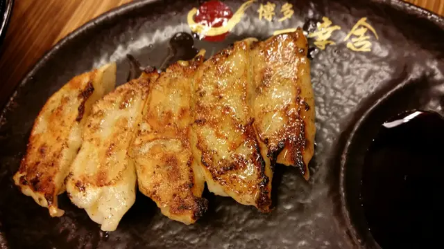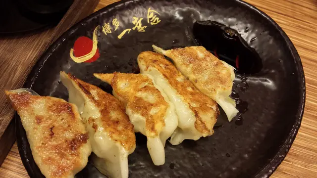 博多一口餃子 $30 :) 一客餃子有5隻,煎得個底幾甘香,又唔太油,咬落挺脆口,菜肉餡料幾鮮甜,不過,肉汁唔多,啲餃皮夠薄,但感覺偏腍。配上帶微酸嘅餃子專用醬油,仍然都覺得唔錯。