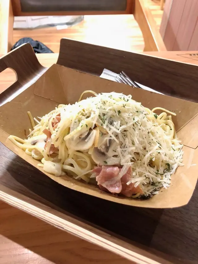 依間叫郵意既cafe係好耐之前都聽過架啦,係以旅遊為主題既,店內仲擺放好多名信片同埋地圖等,好有旅遊風可惜當年想去既時候搬左新舖,依家黎依間係尖咀新舖,一入到黎發現地方大,裝修風格舒適:)我所見餐牌就只得以下幾頁,差不多係全日適用既餐廳主食都係以意粉、沙律、全日早餐同埋薄餅為主甜品選擇好多值得留意既係晚上8:30後設甜品放題,68蚊就任食,堅抵可惜我係黎食晚飯我就叫左卡邦尼意粉以紙兜裝住,感覺好外國原野風友人叫左黑松露汁雜菌意粉黑松露同埋芝士既味道好濃其實兩款意粉賣相好相似,味道都有相同之處,都係好creamy ,用料都幾多架,而佢既份量真係食飽一個人,起初仲驚食唔飽叫多個全日早餐全日早餐睇落都好靚最突出係採用車厘茄常規嘢包括腸、煙肉同埋炒蛋都做得幾唔錯:)但重中之重係依個牛角包啊係特別好味鬆軟得黎散發出淡淡牛油香,新鮮焗好係好食整體而言,餐廳食物質素不錯,而且價錢都算相宜,最特別既地方,係佢位處一個人流唔算多既商場入面,舖位佔地甚廣加上環境清幽,好多人都黎嘆杯飲品食住嘢黎傾功課同埋吹水,真係難得既悠閒寫意好地方…查看更多