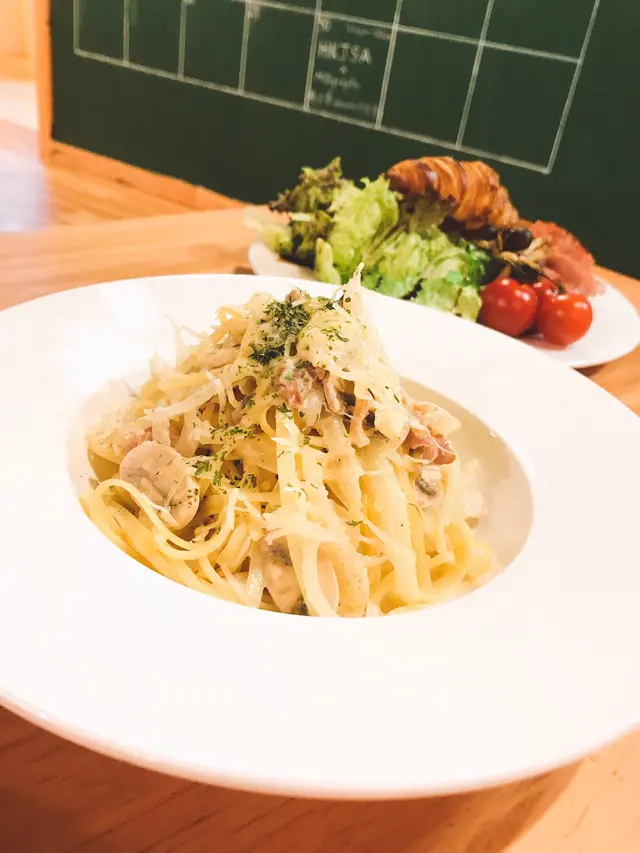聽朋友介紹尖沙咀有間好大既樓上cafe可以同朋友一邊食飯一邊傾計,今日終於都試到啦。一上到2樓已經見到一個好大既空間,就咁睇有少少似圖書館既一角。可能係café餐廳所以飲品選擇好多,有唔同既咖啡同埋茶。我地叫左一個carbonara,一個all day breakfast同埋心太軟配雪糕。之後店員就會好似foot court咁俾個機我地等食物準備好就出去攞。Carbonara睇得出有溝過蛋黃所以令到每條意粉都會深黃色,面頭再加上芝士碎,用意粉既熱力將佢溶入意粉入面,加埋煙肉真係好入味同埋好creamy,成個意粉都整得好出色。All day breakfast有好多沙律菜同埋一條有大既腸,加埋煎香咗既煙肉、炒蛋同埋好新鮮多汁既車厘茄,真係好滿足同埋飽肚得嚟又唔會太滯。牛角包好香牛油味店員同我地講如果想後上心太軟就最好早15分鐘同佢地講聲,我地之後出去同佢order後等左大約十分鐘就有得食,雪糕加上心太軟真係絕配,一凍一熱既口感好好,心太軟亦都有好多朱古力流心,作為甜品份量岩岩好!加上環境好好坐得好舒服,估唔到尖沙咀都有一個咁chill同埋唔多人既地方!…查看更多