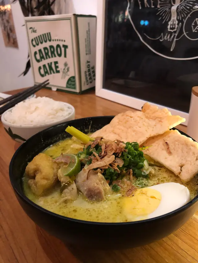去西貢都有好多人推介嘅白鬚,所以難得黎到都要黎試一試。入到去環境闊落,帶有度假嘅感覺。白鬚牛骨湯飯 $108招牌菜,多數人推介。大大舊牛骨,連埋唔少牛肉、軟骨同筋膜。肉質偏瘦但唔會嚡口,湯底清甜唔太油膩,飲得到有蘿蔔香甜味。蘿蔔爽甜冇渣,牛骨湯上面灑上大量炸蒜粒同蔥粒,令整體更加惹味。如果牛骨湯加入其他牛肉,令到牛肉湯味較為濃,會更加出色。印尼雞湯飯 $78食落似味道較輕的印尼喇沙味,有濃濃嘅椰奶味,食落有香茅同檸檬葉嘅味道,可以自行加入青檸。入面配埋有雞肉絲、芽菜、豆卜,湯面上面有一塊印尼蝦餅。印尼曼特寧滴漏咖啡 跟餐半價咖啡味道濃香醇,不帶有酸味。另外配有煉奶可按個人喜好加入。…查看更多