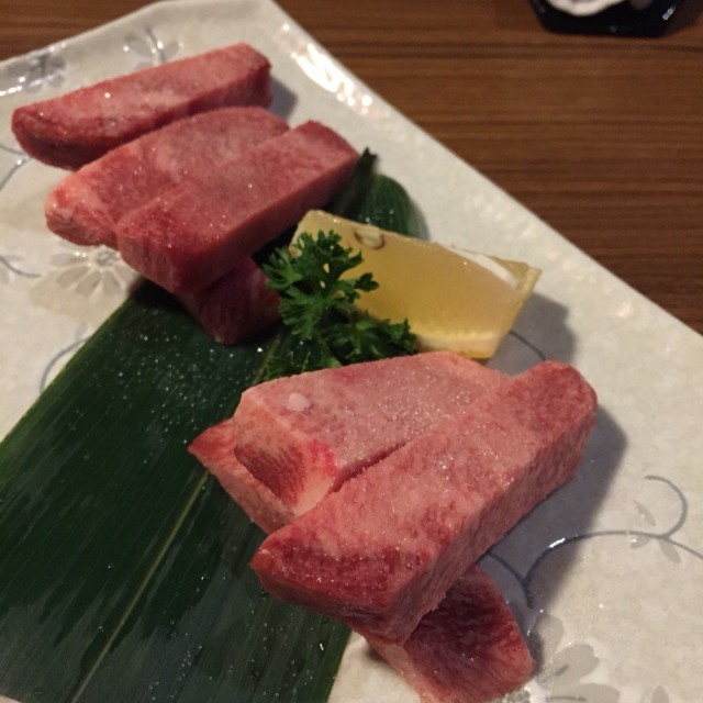 ),幸弟弟早來,並挑了落地玻璃窗邊位置。與同區伊呂波比較,我們一致認為和宴環境更舒適:裝潢雖大同小異,空間感強多了。服務亦很周到,是夜所見店員皆是少女,但有禮貌、細心,甭客人揚手便主動添水和收拾碗筷。 (訂座時的「小事」,罷了 :))預算充裕,我們毫不猶豫地「包辦」了餐牌上三款和牛拼盤,再來便是我深愛的牛舌和羊架