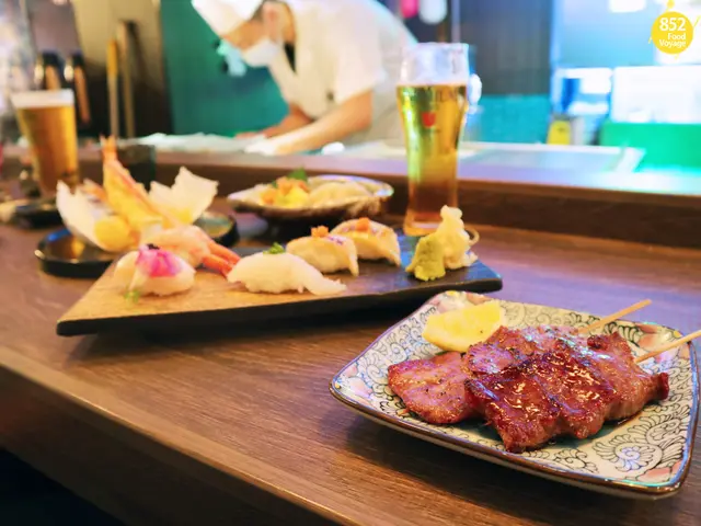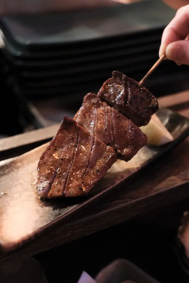 隱藏於尖沙咀鬧市,這間位於地牢的居酒屋連接著一個窄窄的入口,通過樓梯,推門進入後,發覺裡面別有洞天!居酒屋內設有壽司吧、炭火燒烤吧,還附有多個大型的魚池,擺放了當天新鮮時令的海鮮供客人挑選。餐廳更設有特選的折扣優惠,星期一至星期日,每天的優惠都有不同。鳶極上壽司十貫 ($280)廚師發板的極上壽司,廚師會揀選當日時令的食材製作十貫壽司,所以每天都可能會有所不同,因此每款壽司都是最當時得令之選。雲丹盛丼($230)這個丼飯由四款不同食材組合而成,分別有三文魚子、吞拿魚腩蓉、蟹膏,當然少不了主角雲丹。各款材料本身已很鮮甜美味,四樣加埋就更加相得益彰!鹽燒香魚($88)原條的香魚以鹽燒,外皮燒至金黃香脆,魚肉則仍然保持細嫩鮮甜,佐以柚子豉油令鮮味更加提升。鹽燒日本雞皮 ($30)用炭火燒的日本雞皮,只是用了少少鹽調味,雞皮燒至香脆,油脂甘香四溢。厚燒牛舌芯($58)厚切的牛舌芯,入口爽彈有嚼勁,肉味濃郁,是佐酒的最佳拍檔。燒菠蘿($38)新鮮的菠蘿燒至表面焦糖化,鮮甜又多汁,更可作為餐後甜品。StorefrontInteriorMenu…查看更多