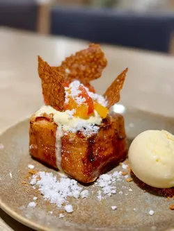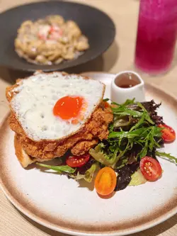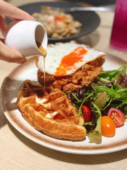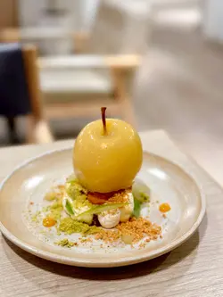 自從係係荃灣食過Minimal嘅姊妹店,就知佢地嘅甜品好出色,賣相同味道都好高質。今次試深水埗店,甜品絕對係佢地嘅皇牌產品✨▪️Jumbo炸雞麻糬窩夫$118窩夫帶mochi口感,外脆內軟,外層仲帶牛角包酥皮口感,炸雞又脆又juicy,加埋脆邊太陽蛋,比想像中夾▪️蘭王·舞茸松露醬·貓耳麵$128貓耳麵口感煙韌,因為形狀彎彎地,所以好掛汁,每一啖都食到滿滿松露醬,濃郁入味。另外加咗隻日本蘭王蛋,口感更滑👍🏻👍🏻推薦▪️法式多士配四季桔雪葩$90 本身想試輕盈啲嘅蕎麥茶雪糕,可惜冇貨🥺見呢個幅圖幾好就揀咗,法式多士切開係麵包布甸嘅口感,雲呢拿味濃郁,蛋漿夠彈滑,另配酸爽雪葩,令整體冇咁膩▪️原隻蘋果配酥盒$92呢個賣相💯佢啲甜品都整得幾有心思,上面嘅原隻蘋果外層帶少少果凍口感,入面仲食到粒粒玉桂蘋果肉,底層配千層酥盒,唧滿焦糖吉士醬▪️火龍果乳酪$48乳酪濃厚,加上紅肉火龍果幾濃稠,味道酸甜清爽…查看更多
