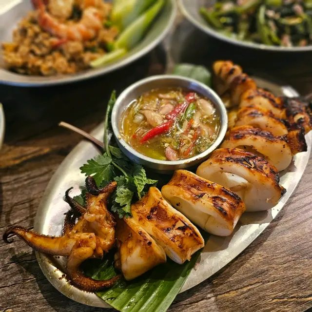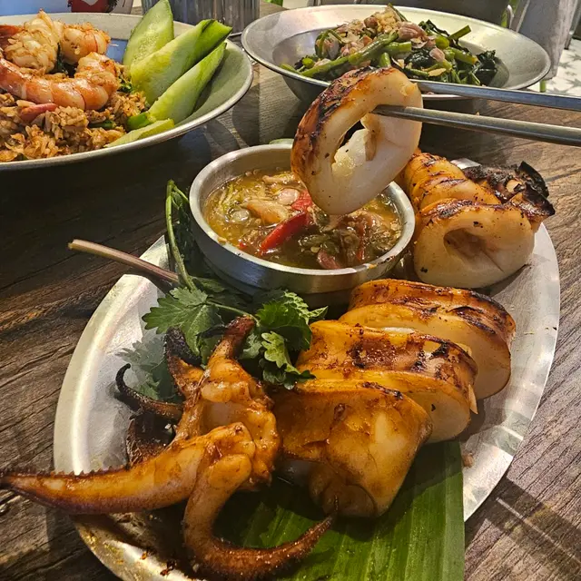 原隻魷魚串燒 ($168) ★★★★★賣相已經非常吸引,以燒原隻魷魚來説算是比較大的魷魚(也可能因為沒有燒到熟透/很乾而縮水很多),魷魚鬚都切到幾嚿,非常香口。旁邊的辣味海鮮醬是畫龍點睛,更突出魷魚的海鮮味。整體而言,這裏的食物質素、服務、環境皆很出色,值得再嚟及推介予其他人~