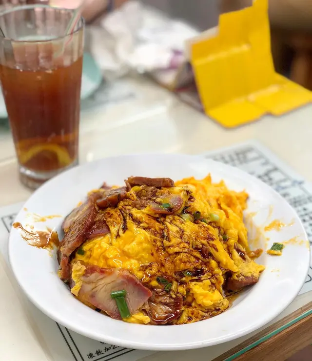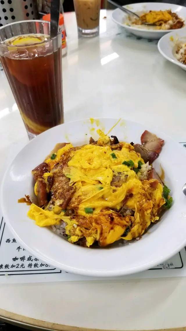 As everyone else here is recommending, I ordered (and highly recommend) the 叉燒滑蛋飯 (char siu scrambled egg rice). And to drink, I got an iced lemon tea.