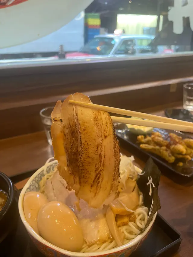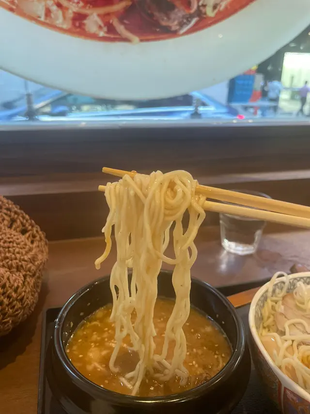 在中環逛完大館後看到對面有一家日本人氣拉麵店,日式設計的裝潢,空間足夠不擁擠,晚餐時間也有人潮不斷。菜單選項精簡,價錢合理。叉燒魚介豚骨沾麵 $128沾汁是魚介與豚骨的完美融合,濃郁卻不膩口,帶點海味的鮮香。麵條彈牙。叉燒切得厚實,脂香四溢。份量很足夠。招牌原條豬軟晉拉麵&溏心蛋 $148原條豬軟骨很吸精,炆得入味又軟嫩,幾乎可以用筷子輕輕劃開。湯底濃厚,帶有膠質感。溏心蛋熟度恰到好處,蛋黃流心。焙茶雪糕配甜薯 $38焙茶雪糕茶香濃郁,烘甜薯外脆軟糯。…查看更多
