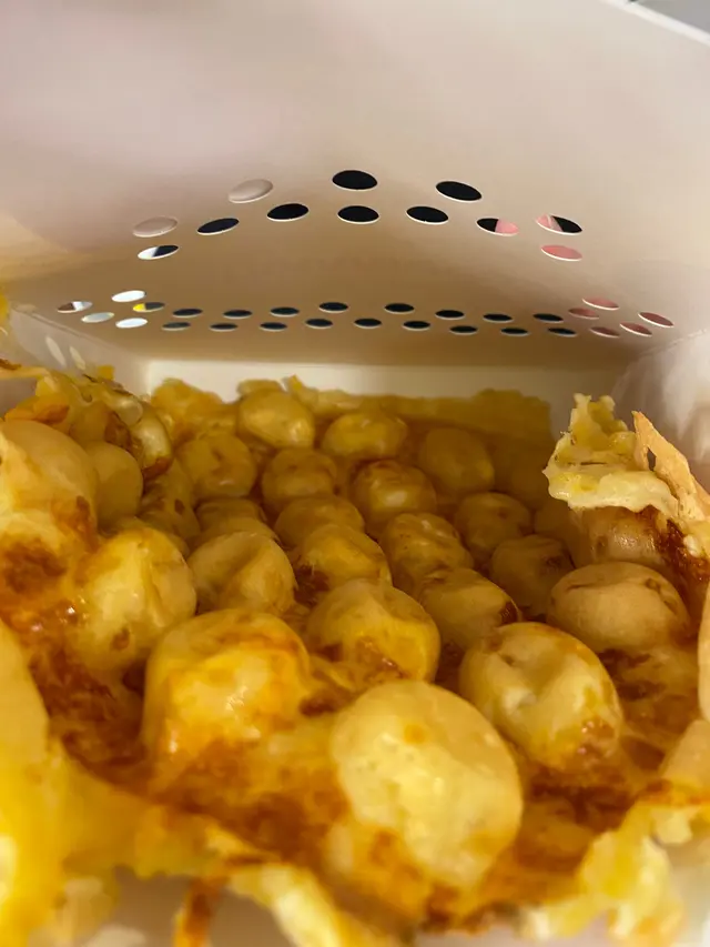 大約5分鐘左右,就收到熱辣辣的芝士雞蛋仔。 粒粒都有芝士,又有蛋味,軟熟又熱辣辣,令人立即食不停口,絕對係好品質的雞蛋仔