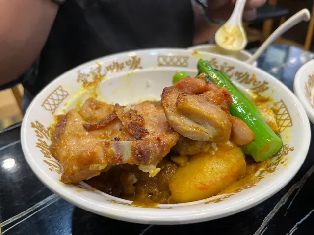於澳門擁有77年歷史「叠記咖喱」在香港開業至今,已有3間分店。一直以來鍾情咖喱的我,朋友邀請我位於太子花墟的〈叠記咖喱〉享用午餐。我們點了招牌菜的如珠如寶麵、叠記咖喱三寶飯、一碟通菜和兩杯餐飲。如珠如寶麵~這碗麵除了有橡筋麵外,還有豬皮、豬紅、豬手和豬頸肉。朋友喜歡吃豬手,豬手沒有半點豬毛,且豬皮軟腍,滿是骨膠原,又有滷水香味。豬頸肉嫩滑,豬皮吸收脯汁。橡筋幼麵,麵質口感彈牙,配上腩汁湯底,味道濃郁。叠記咖喱三寶飯(牛腩、雞扒和豬扒)~這碗三寶飯很豐盛,當中的三寶是牛脯、豬扒和雞扒。初次品嘗此店的咖喱,醬汁香濃帶辣,很適合送白飯。牛脯、豬扒、雞扒和馬鈴薯上滿是咖喱醬汁,毎一口都吃到濃郁的咖喱。鬆化牛腩、嫩滑雞扒,兩大塊豬扒,這三寶的確很出色。腐乳通菜~均衡的飲食須有綠色蔬菜,故點了一份通菜配腐乳。柑橘檸檬梳打(特飲)~柑橘味香濃,有檸檬片和青檸,非常清新,又能解辣。熱檸水~飯後一杯熱檸水有助消化剛才吃的美食。…查看更多