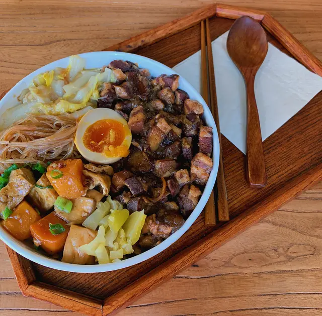 首先,滷肉的肥瘦比例均勻,肉質食落唔黐牙易咬開,雖然小編唔鍾意食肥肉,但講到瘦肉嘅質感絕對值得稱讚👍 -而論到滷肉+配菜vs飯比例最少有1:1,可以話係比得一啲都唔孤寒😳🫶啱晒Meow小編呢類一定要有餸撈飯嘅人☺️望到啲飯俾滿滿嘅餸覆蓋住就覺得好幸福(///▽///) -滷汁方面都比得好足,唔會話食到最後得返啲白飯冇汁撈❤️食落有種孜然粉嘅味道?!係微辣嘅感覺(。ì _ í。)~雖然小編唔食辣,但係都接受到,而且係少有食到嘅味道,感覺好特別但又新奇好味🫶 🤤✨總括而言,喵小編食得好滿足
