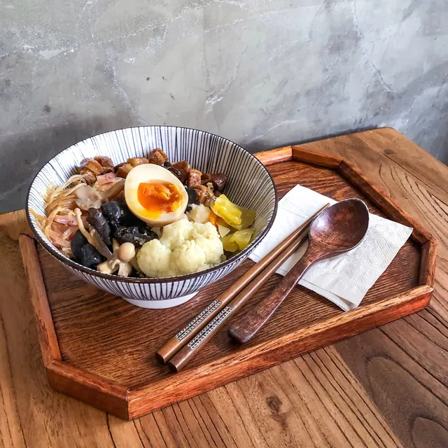 已經bookmark左依間好耐&好想食,今日終於都去到食!本身聽講大角咀依間有好多人排隊,而且去到目測店門前有10幾個人排緊隊,所以都有啲擔心要等好耐(>﹏<)但係店員嗰時就話好快可以入到(可能上一輪已經差唔多食完(around 13:00🕐)),而最後都只係排咗10分鐘左右,所以都覺得好lucky!!!(*☻-☻*)一入去坐低覺得環境幾舒適,由於餐廳枱櫈都係用木製🪑,感覺上幾親切和有台式風格(^^)🌟首先,每一款便當都會跟5款配菜~而本週配菜有( ´▽`):1.蒽酥高麗菜2.家常炒粉絲3.紅燒茄子🍆4.焦糖玉子🥚5.本日涼菜全部都係Meow小編鍾意嘅配菜!\(//∇//)\由於Meow小編本身好鍾意一次過食好多唔同款式嘅餸菜,而本週嘅配菜全部都係我鍾意食嘅料理,所以一直超期待(*^^*)而最後係超級滿意!特別是炒粉絲和高麗菜炒得好入味,入面仲有冬菇絲和蘿蔔絲,整體上每款配菜都好有心思,一啲都唔馬虎!(。ì _ í。)💜 古早味手工滷肉便當🥢 💰$62跟餐免費飲料:花壇茉莉綠茶(+$0)+QQ寒天 (+$3)-喺主角滷肉方面,佢嘅肥瘦比例均勻,肉質食落唔黐牙易咬開,雖然小編唔鍾意食肥肉,但講到瘦肉嘅質感絕對值得稱讚👍-而論到滷肉+配菜vs飯比例最少有1:1,可以話係比得一啲都唔孤寒😳🫶啱晒Meow小編呢類一定要有餸撈飯嘅人☺️望到啲飯俾滿滿嘅餸覆蓋住就覺得好幸福(///▽///)-滷汁方面都比得好足,唔會話食到最後得返啲白飯冇汁撈❤️食落有種孜然粉嘅味道?!係微辣嘅感覺(。ì _ í。)~雖然小編唔食辣,但係都接受到,而且係少有食到嘅味道,感覺好特別但又新奇好味🫶-跟餐飲品方面~茉莉綠茶味道偏淡味,而QQ寒天好彈而且有𡁻勁咬口(^^)🤤✨總括而言,喵小編食得好滿足~就算食完都好想繼續添食(≧▽≦)雖然平時好少出街叫滷肉飯黎食,但係呢個有驚艷到我!絕對值得再去食~o(^▽^)o幸福指數:😻😻😻😻😻/5💜 限定-玖香啤酒豬軟骨便當🥢 💰$76跟餐免費飲料:南投炭焙烏龍(+$0)+愛玉(+$3)-豬軟骨方面,同行朋友比左一塊比喵小編食,食落覺得好有咬口唔黐牙而且好入味,軟骨都煮得適中夠淋,同時仍然維持到一定咬口感(*^o^*)-雖然本身叫玖香啤酒,但食落完全冇啤酒味~唔飲酒嘅朋友都可以叫黎食(*¯︶¯*)Ps. 同行朋友的豬軟骨便當本身叫咗少飯,但朋友覺得好似同正常份量差唔多(可能唔記得左比少飯?)幸福指數:😻😻😻😻/5*沒有加一服務費…查看更多