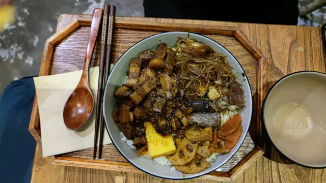 搬左新店終於黎食啦 店面幾大 平日一點半黎到 都等左35分鐘先入到 (建議大家可以試下兩點黎食 條隊好似會短啲 不過3點就會落場架啦) 本身好想食焢肉便當 但原來係期間限定 當日就食唔到啦每個便當會有五款精選配菜 附$25高山茶或養生湯 亦可補差價升級飲料▪️古早味手工滷肉便當 $62呢個便當 真係滿足到超鍾意食餸既我 餸同飯既比例差唔多一比一當日五個配菜為 蒜香菜心 香辣炒冬粉 雲耳炒野菌 溏心蛋 本日涼菜好鍾意佢有菜 令我既飲食好似均衡返小小溏心蛋 生熟程度啱啱好 幾流心富蛋香 不過感覺上就無乜調味加上香辣炒冬粉 同爽口厚切鹹菜 酸酸辣辣 開胃惹味滷肉有肥有瘦 肥膏有點入口即融 味道偏甜 似曾相識 勁似平時食開既豬肉乾底下既米飯滲有唔少醬汁 所以整體食落一啲都唔乾 味道口感都好豐富⁣⁣⁣⁣⁣▪️那個滷排骨便當 $66便當除左滷排骨 配料同滷肉便當既都一樣個人認為真係好似台灣版既韓式拌飯 尤其是有辣既冬粉 (完美取代泡菜粉絲) 同埋菜 (好似芝麻菠菜) 所以我會話佢係台式拌飯滷排骨份量十足 成個碗咁大塊 滷得入味甜甜地 外皮非常酥脆 肉質唔柴 邊邊有入口即融既肥膏 推介!▪️愛文芒果花壇綠茶 少糖 +$10初初入口係芒果既香氣 留齒有綠茶清香 少糖岩岩好 唔太甜膩之餘 仲幾清新解膩⁣⁣⁣⁣⁣⁣⁣⁣⁣⁣⁣⁣⁣⁣⁣⠀⠀整體而言 份量十足 食落好有台灣既味道 真心排都值得 回頭率極高 重點係店員們都好nice…查看更多