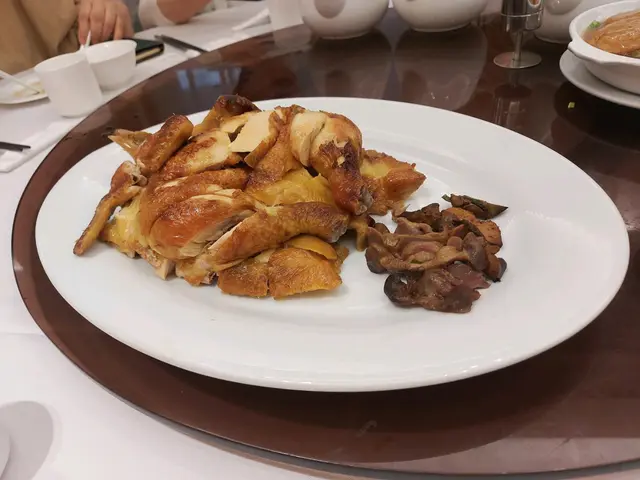 南瓜盅炒素:南瓜外殼係純粹for 賣相,入邊d 菇炒得好乾身又好香口,又mix 埋唔同嘅菇類有唔同口感,好食。比較失望嘅,係:🤔古法鹽焗雞上到枱嚟個樣唔似鹽焗雞,問侍應係咪來錯?佢話係鹽焗雞呀。但係食落,點都係脆皮炸子雞嘅口感同味道。完全唔係鹽焗雞。如果以脆皮炸子雞來衡量,咁佢個皮係整得好脆,肉嫩,味道偏淡。以一個脆皮炸子雞係唔錯嘅,但係絕對唔係鹽焗雞囉。🤔糖脆柚皮 柚子皮嘅賣相咁似咕嚕肉嘅?食落都係咕嚕肉嘅feel,外皮酸酸甜甜,內裡係淋淋地嘅柚子皮。似係一個素菜咕嚕肉,但係唔係想食到傳統柚子皮嘅味道同嘅口感。我本來最鍾意食有新鮮感嘅菜式,但覺得咁樣整柚子皮有嘥咗,因為食唔到柚子皮嗰種索晒汁嘅特色同好味。至於其他餸就正正常常,係符合預期嘅酒樓味道。…查看更多