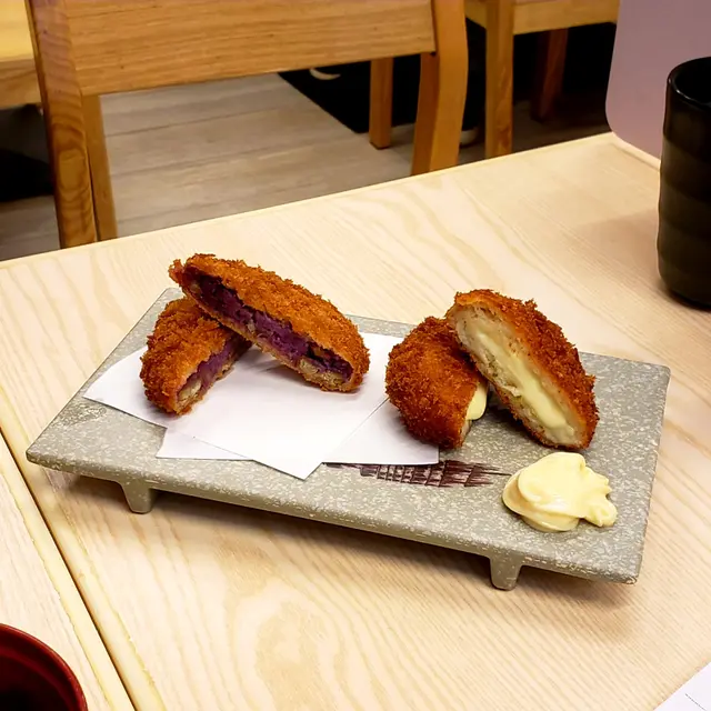 之前weekend泥過兩次都冇開,今次決定放工夜晚泥挑戰~ 落住大雨都要泥冒險,勁滾動佢真係有開🤩勁多鬼滅野同動漫figure, 我呢個宅女睇見都興奮😂一睇menu, d野又唔算貴喎,比起普通日本餐廳平,所以好貪心咁叫左好多樣野食~ 最惹味係個明太子芝士豆腐,勁香口同creamy! 個極尚牛肉鍋都抵讚,d牛唔會好肥,睇得出真係靚d, 食落去幾嫩,配埋個豬骨湯,清得泥夠好味🤤 可樂餅叫左紫薯甘栗同芝士味,前者都幾足料,食得出粒粒栗子;另外芝士味我個人覺得漏左d😂厚燒玉子應該唔係即時整,不過味道可接受~性格比真係唔錯,下次喺樓下超市買完野可以再上泥食個飯😜…查看更多