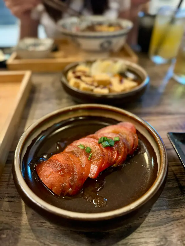位於佐敦的地道小店-台北人居酒屋餐廳佈置別具格調餐單以小食為主,適合佐酒邊食邊傾 🍻仲有90mins任飲優惠🍱鹹酥雞便當 $68鹹穌雞表皮脆炸,帶點鹹香味道內裡雞肉鮮嫩帶有肉汁,滿滿台式風味😍🍅台南薑汁番茄 $38番茄口感fresh,配上一層薄薄薑蓉味道清新酸甜,最後帶有薑味餘韻很有新鮮感的開胃小菜🤤🐮黑松露牛舌滷肉飯 $58滿滿牛舌粒上鋪有半熟蛋黃,賣相吸引濃濃的蛋香配上牛舌,十分好味份量恰到好處,味道令人滿足,值得推薦👍🏻🥚芝士芋泥蛋餅蛋餅即叫即製,可以自選口味入口微暖,質感柔軟🍥黑輪 $32黑輪口感柔軟彈牙滷水味道濃郁而不會過鹹🥩厚切牛腱 $48牛腱足料厚切,牛筋部份通透整體口感軟熟煙韌🥤蜂蜜檸檬蘆薈-酸甜清新🥤冬瓜鮮奶入口即嘗到奶香味道然後細細滲出冬瓜茶風味…查看更多