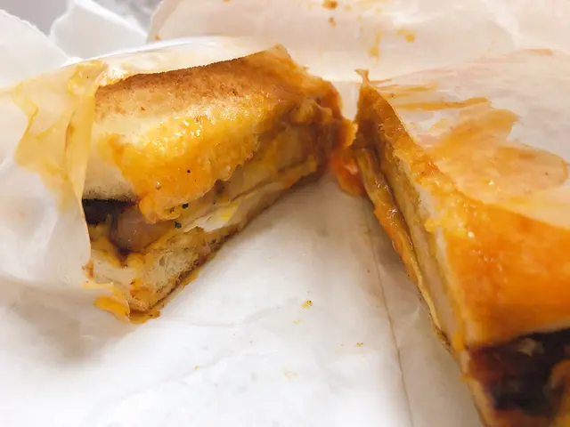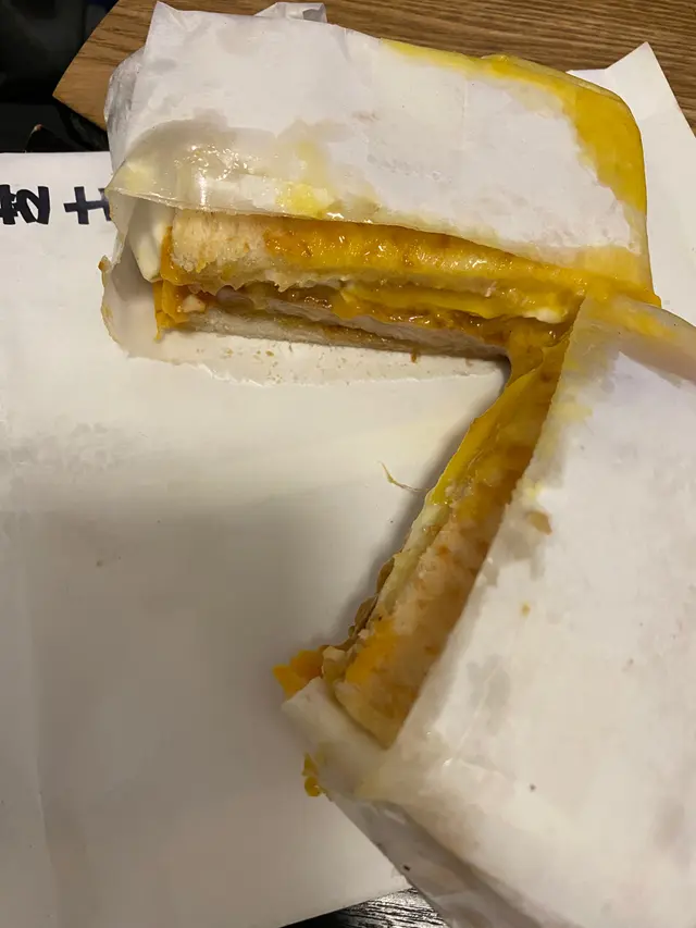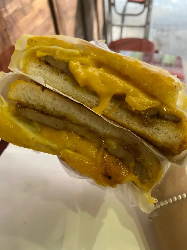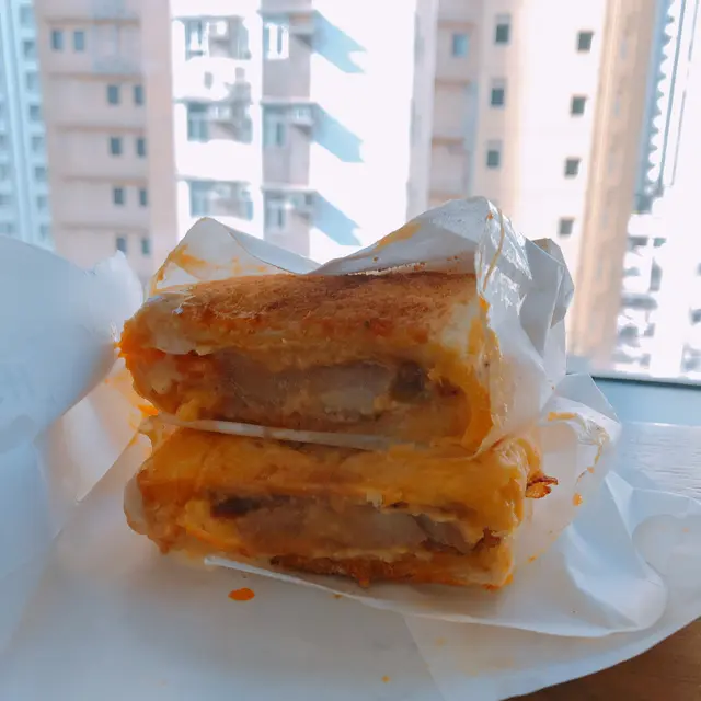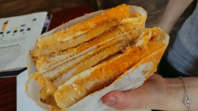本身想食午餐間餐廳好多人排隊,所以諗住食少少野醫下肚仔先,再去食個間。我醒起旺角最近新開左間台式吐司小店,好適合只係需要食少少野又唔飽既我地,一於起程。黎到都有唔少人,我地決叫一份台式肉蛋芝士吐司share食。落左單等左十分鐘左右就拎到手。呢間主要做外賣生意,係巷仔有少量座位俾你堂食,但環境當然就唔多好啦。台式肉蛋芝士吐司索價$53,吐司烘得好脆,夾住一塊薄薄既豬扒,流心蛋同芝士。賣相好吸引,醬汁甜甜地,幾好食。流心蛋好正,但會流到周圍都係,芝士溶溶地,好邪惡。不過雖然好食,但我覺得定價太高。…查看更多