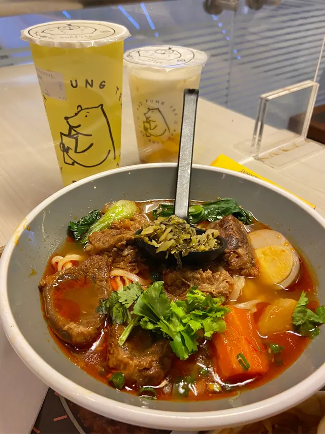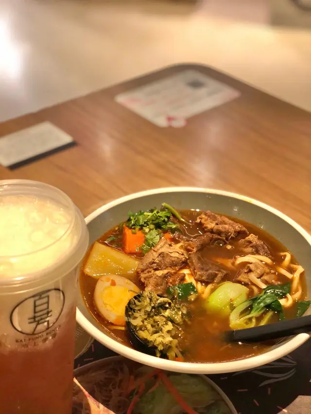 喺希慎廣場個food court嗰度兜咗一圈,見到呢間都好多人排隊,冇得去台灣都想食下台灣嘢食,就諗住試吓啦!排隊真係排長龍咁,同埋等嘢食都等咗15分鐘。我就嗌咗一個百芳牛肉麵,台灣嘅紅燒牛肉麵真係我嘅最愛,呢間啲牛肉麵食完都會諗翻起台灣嘅味道,上面仲有蘿蔔、白蘿蔔同埋滷蛋,非常足料,同埋呢一間值得稱讚嘅係,牛肉夠足料,同埋食落口感啱啱好。食台灣野點少得手搖飲品,叫咗一杯珍珠奶茶,珍珠好多好多,但係冰都好多,奶茶都OK。整體來講都唔會太貴。…查看更多
