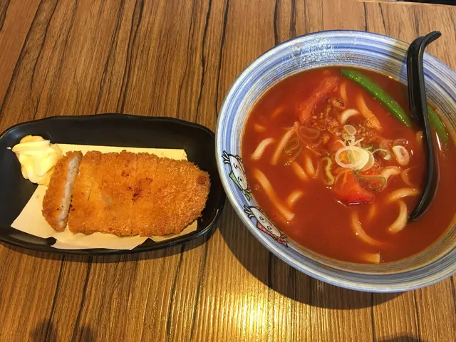 到我朋友個烏冬上枱見到佢個烏冬嗰個湯底出現睇落去俾我嗰個顏色更加線,我二話不說就試吓佢個湯底,一食落去熱辣辣的,起碼個番茄都係新鮮嘅唔係梅嘅,吉列豬扒食落都係熱厚嘅覺吉列脆卜卜可以食得過。