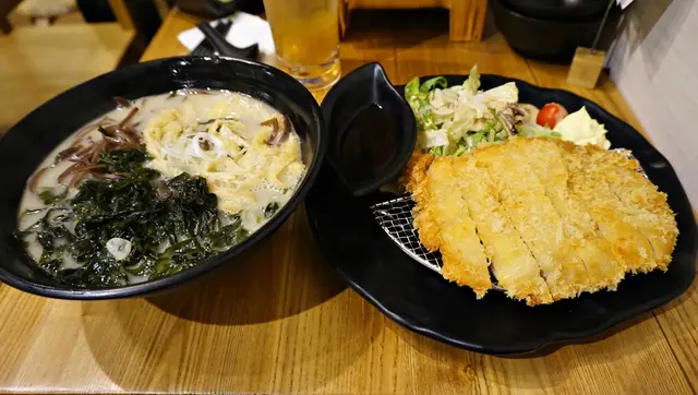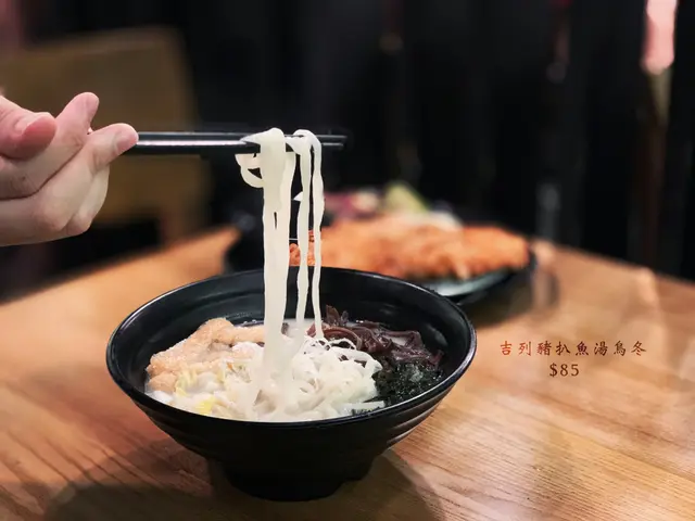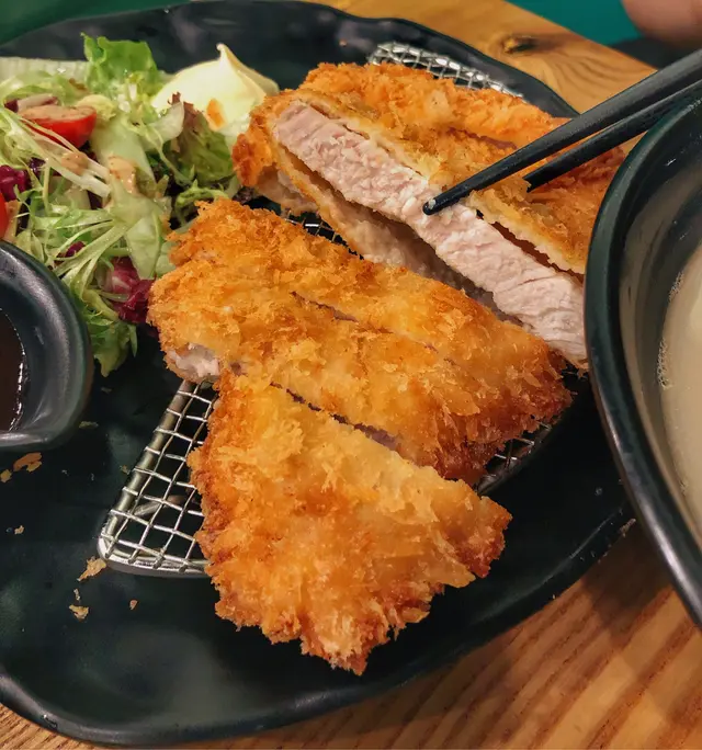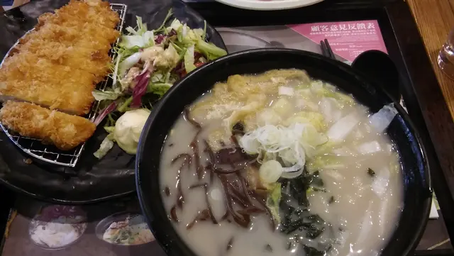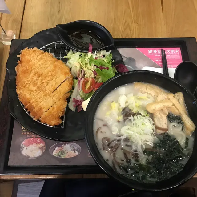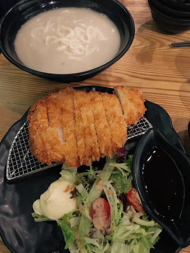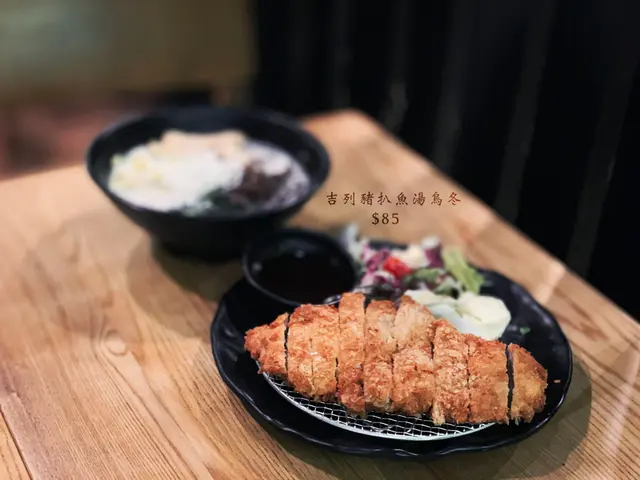今晚好想食烏冬,朋友就推介左兩間用鯛魚做湯底既店鋪,而我就揀左呢間9點黎到,好彩仲可以入座,再晏d 就會阻住人地收工😛今次我揀左"吉列豬扒魚湯烏冬", 我朋友揀左"安格斯牛肉蕃茄魚湯烏冬"先講講"吉列豬扒魚湯烏冬"湯底,一飲一啖,第一時間覺得好濃郁既魚味,即刻飲左好幾啖👍🏼👍🏼👍🏼