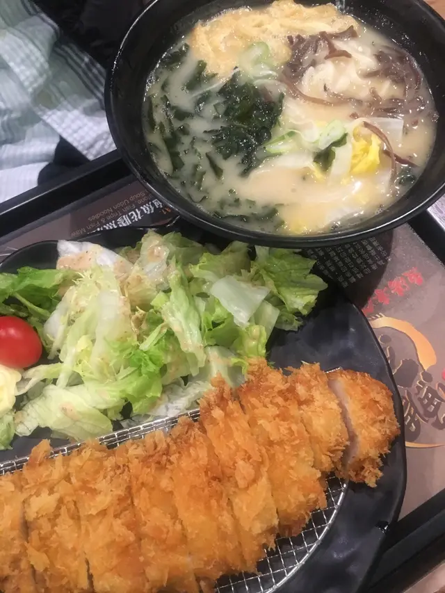 吉列豬扒好鬆脆,襯熱食仲好食👍🏼👍🏼👍🏼然後朋友叫果個"安格斯牛肉蕃茄魚湯烏冬"湯底,蕃茄湯唔係水滴滴,蕃茄味岩岩好,要讚一讚先不過安格斯牛肉就差左d, 因煮得過火左,黎到已經接近10成熟,雖然有口感,不過就係老左少少🙈🙈 都唔錯既