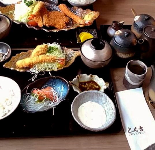 必吃吉列豬扒!炸的時間拿捏得剛剛好!外皮香脆肉質柔軟!一口咬下去的感覺就是棒!刺身也是ok的自己動手磨芝麻,邊磨邊聞到芝麻香~再加醬汁攪拌就完成了!配豬扒吃剛好!吉列大蝦熱稻庭烏冬很大一只蝦! 豬柳丼吉列大蝦同事吃素所以點了這兩個~菠菜很精緻,味道清甜的~凍豆腐 炸薯蓉而這裡可以無限加野菜~ 服務生也很有禮貌~我還會想再來!~ …查看更多