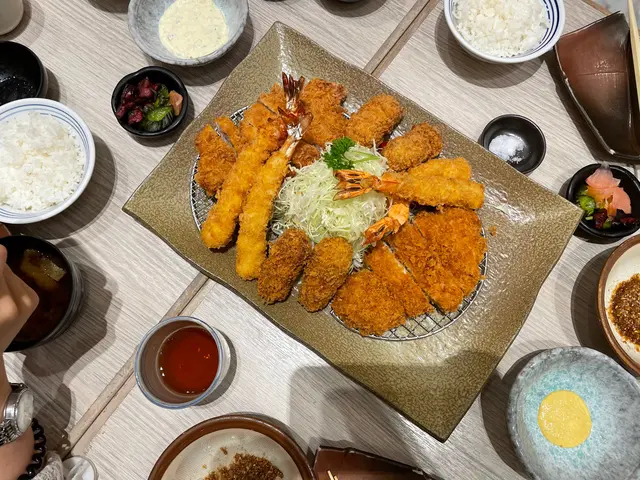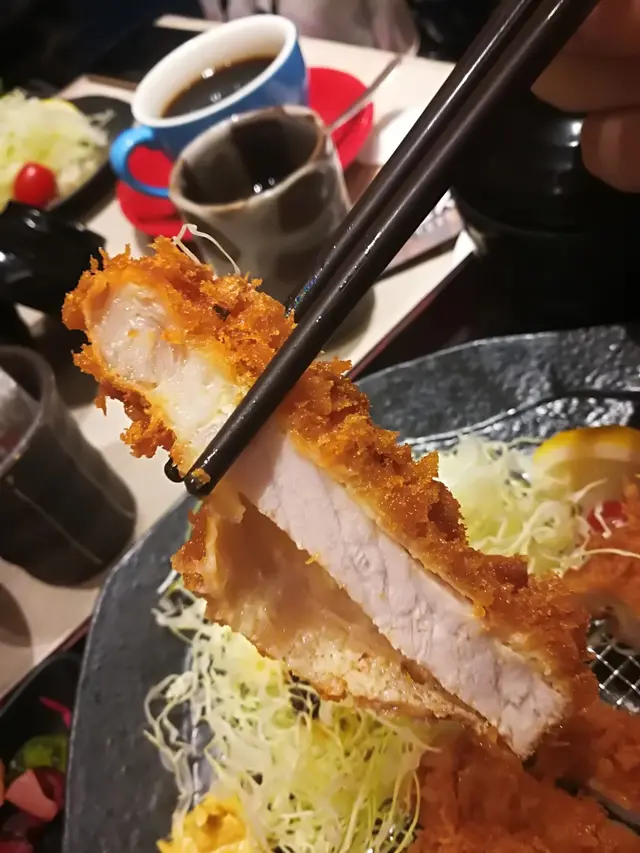 友人推介這家的炸豬扒,一行四人便前去食lunch,點了四個lunch set,一齊share食~當中有炸豬扒、炸蠔和炸蝦,另外配有每人一碗飯和麵豉湯。他們會先給一個手動研磨碗,可以將碗內嘅芝麻磨碎。之後混合枱上嘅醬汁,用來點豬扒。炸豬扒炸粉面尚算適中,不算太厚也不算太薄。不過豬扒不算充滿肉汁,味道尚可,沒有太大驚喜。還有份量比較少,每人大概兩塊左右。炸蝦和炸蠔方面,意外地比豬扒出色,生熟度調較得比豬扒為佳,不會過熟。由於份量較少,炸豬扒有椰菜絲伴碟,而且能再refill,伴上柚子醬汁也不錯👍🏻…查看更多