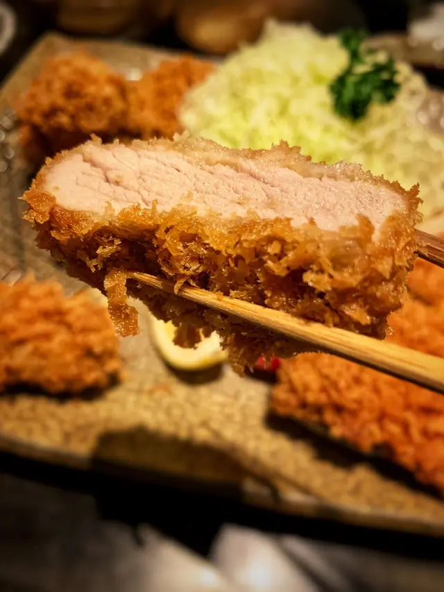 🥢今晚食嘅二人前,有吉列豬扒、豬柳、同蠔。吉列水準媲美日本食到嘅一樣,一夾落去嘅聲音,感受到Crunchy鬆鬆嘅脆炸外皮。