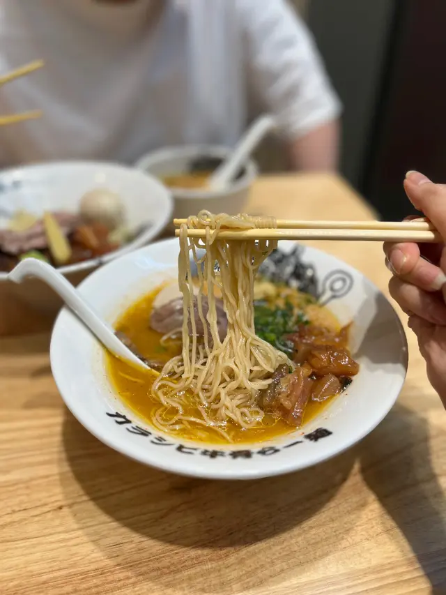 「鬼金棒」既姐妹店「鬼金棒牛骨湯拉麵」,一開已經想試!聽講用多達40kg牛腿骨熬成牛骨湯頭。今日行過尖沙咀,好彩醒起佢,即刻去左試🤣🤣-💕 味玉辣麻牛骨拉麵 $110👅好味指数:7/10可自選大中小辣/麻度😍,愛麻的可以大膽重麻!😝 牛骨湯底清澈不油膩,有淡淡牛骨香味,配料有牛肉有牛筋,牛肉軟腍🥹牛筋Q彈🥹,麵偏幼身,口感有啲似雲吞麵。-💕 味玉辣麻牛骨沾麵 $110👅好味指数:8/10重口味之選!同樣可自選大中小辣/麻度🥰,湯頭好濃稠,沾麵比平時食既扁身啲,好彈牙掛汁🥰!橙紅色既溏心蛋,都好正🥰更邪惡既食法可以叫白飯撈埋個湯食😍不得了!-💕 煎餃(六隻) $45👅好味指数:7/10即叫即煎,煎得香脆偏油小小,唔會乾身。-環境:8.5/10服務:8.5/10整體味道:7.5/10回頭率:7/10…查看更多
