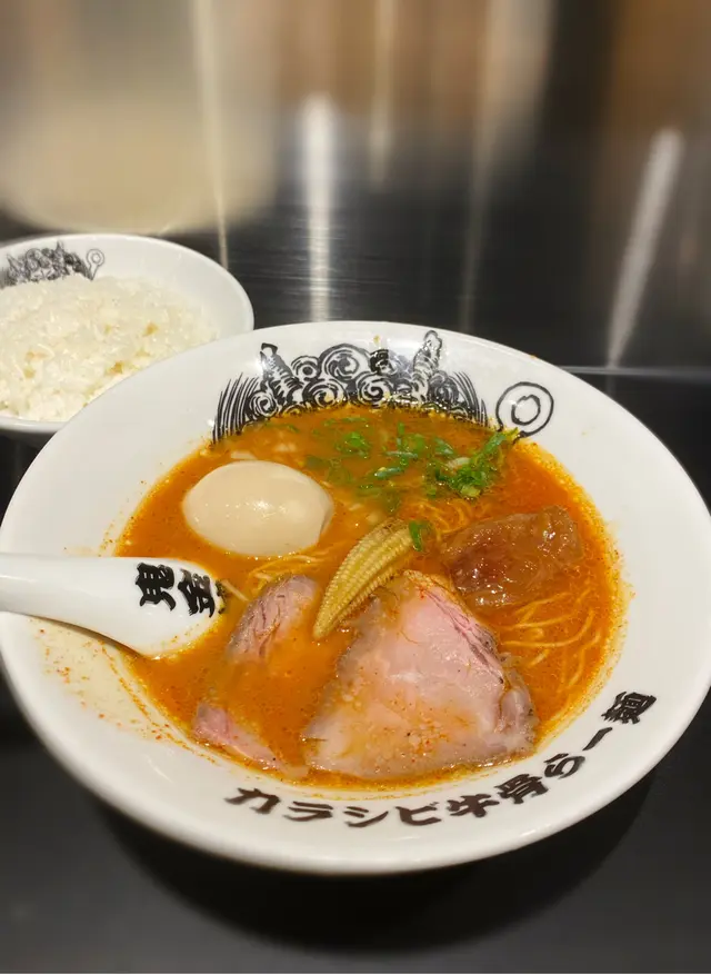 鬼金棒牛骨辣麻拉麵,東京過江龍🐲不論係日本定香港都超人氣,想試好耐,今日食銅鑼灣店,新派和風拉麵店裝修,企理舒服,建議坐bar枱,師父會直接遞拉麵俾你,感覺唔錯😘最出名就係辣麻味噌同牛骨湯😋即刻開餐!味玉辣麻牛骨拉麵🐮上枱好吸引既賣相,好香濃既感覺,梗係試湯先,點左小麻小辣,接受到,感覺再食可以升⼀級,超濃既牛骨湯,牛味就算係麻辣下都食到😳麵質係幼麵,口感唔錯都好掛湯,湯麵都好好味🤤味玉真流心,夾湯好惹味,牛叉燒驚人,生熟攞得好好,有肉汁,正🩵加左玉米旬,燒左⼀燒味道唔錯!🤞🏻拉麵最佳拍檔:配個白飯,揀左秘製醬汁慢煮牛筋丼,賣相好吸引,淨食牛筋都抵,又多又腍,起晒膠,非常好味,配埋珍珠米食⼀流😎加埋拉麵湯,好日式既感覺,啲味道又多左層次,好滿足😌果然咁出名係有原因既!麵好味湯好飲飯好食😗鍾意食拉麵既⼀定要試🍜…查看更多