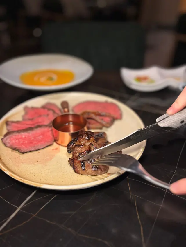 銅鑼灣爆紅和牛任食🤎係肉控天堂吧.ᐟ.ᐟ@thegrillroomhk 90分鐘澳洲和牛任食套餐 $298/位🥩包括:前菜拼盤+餐湯+餐包+3款和牛+意粉(加$50任飲無酒精飲品 / 加$100任飲酒精+無酒精🍹)┆❥回訪率: 8/10🧀 前菜 & 餐湯- Amuse Bouche Platter :三款小食包括和牛多士、炸薯蓉同肉丸,擺盤有誠意,不過味道偏向普通,未算驚喜- 南瓜湯 :香滑濃郁,唔會太甜,暖笠笠幾舒服- 餐包配牛油 :餐包熱辣辣,配上吱得好靚嘅牛油,幾加分🥩 主菜重頭戲:澳洲和牛三重奏私心推介:脊肉同冧扒 (1&3) 🤎建議問店員攞鹽+芥末!1. 澳洲和牛脊肉|肉質最淋最有肉汁,幾嫩滑,牛味濃郁✨2. 澳洲燒和牛肉|薄切呈粉紅色,幾有肉味不過無咩特別3. 澳洲和牛冧扒|有明顯炭燒香氣,外脆內嫩,啖啖肉感,香口得嚟唔會太膩✨🍝 是日意粉牛肉蕃茄大通粉,意粉幾有咬口,唔會煮到淋晒,味道唔錯,作為配角都幾有驚喜✨…Read More