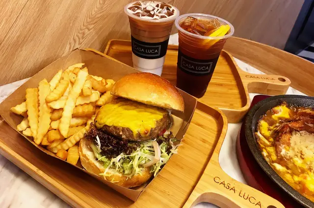 每到星期日,都好想慢活一下!今日就特意到九龍灣E-Max國際展貿中心行名牌Outlet及家居中心。餓了便到食店林立的2樓覓食,見到Casa Luca西式快餐店裝修有特色,環境舒適、食物種類又多,便選定這間來醫肚!這裡有特色鐵板(飯/意粉)、招牌炸春雞、漢堡拼薯條、意粉、飯類、輕食沙律等,任君選擇。開餐啦!今次叫了🦀軟殼蟹咖喱鐵板飯及和牛漢堡。🥢脆炸軟殼蟹🦀配日式芝士咖喱鐵板飯 (HKD88)🍹配凍檸茶 (+HKD3)在熱辣辣的鐵板上,有大大隻脆炸軟殼蟹🦀,入口香脆鬆化;配有香滑濃稠、甜而不辣的日式芝士咖喱飯,口感層次豐富。🥢和牛漢堡拼薯條 (HKD68)🍹配升級焦糖Latte (+HKD18)🐮和牛漢堡賣相吸引,內有🐮和牛漢堡扒、車打芝士、醬汁、菜、青瓜、蕃茄、洋蔥,材料豐富,層次分明。 厚厚的和🐮牛漢堡扒肉味細緻,鮮嫩多汁,跟其他材料一齊食,更為滿足。 不要以為這漢堡包平平無奇,其實烘得相當酥脆,跟肉嫩的🐮和牛,口感交錯。…查看更多