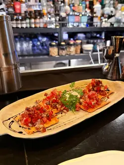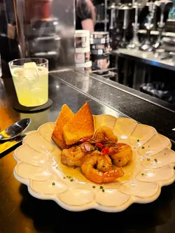 餐廳有室內外座位,吧枱位更可看bartender調酒。有情調,約會慶祝聚會好地方。食物質素和環境地點性價比高,職員友善,有驚喜。🐟 秘魯吞拿魚拌蕃茄莎莎配香烤鱈魚脆片及黑醋汁 Ceviche Tuna Salsa $68吞拿魚沙沙,餅乾搭配微辣的莎莎醬與檸檬汁,清新開胃🦐 蒜片橄欖油封大蝦配佛卡夏多士 Garlic Prawns Conflict $88大蝦飽滿彈牙,蒜香濃郁撲鼻,搭配微辣的醬汁能調出香辛味,配搭脆口多士增加層次感🍚和風原隻璣煮鮑魚配野菌意大利飯 Risotto with Isoyaki Abalone $288米粒吸飽口感滑順,醬汁creamy卻不膩,大顆鮑魚帶點嚼勁,整體很配合🐷慢煮西班牙黑毛豬鞍架 Iberico Pork Loin Rack $188豬鞍油脂分布均勻,肉質軟熟,搭配微酸的果醬更添層次mocktails 🌹Rosy Romance $100冷泡玫瑰茶加入鮮蘋果汁和蜂蜜,淡香玫瑰味,很易入口🍸First Crush $100菠蘿汁混合青瓜糖漿soda十分清新,平衡食物油膩感…Read More