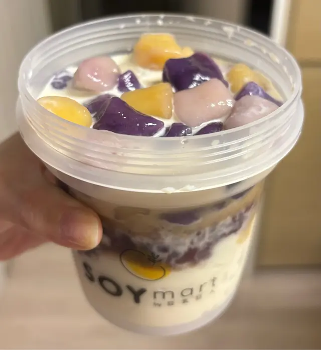 多芒楊枝甘露 $48(鮮芒果、西米、芒果汁、金柚、特調椰奶)芒果算甜,但不是食過最甜的。西米軟糯煙靭,可是食到中途有一大舊西米仍然互相黏着😅。甘柚放置於最頂,幫整個楊枝甘露加添酸味👍🏻,能夠托起芒果汁的甜。正常發揮吧,有點兒偏貴🫣超煙韌豆花 $42(豆花、珍珠、芋圓、小丸子、奶蓋)豆花完全不甜,有香濃豆味👍🏻。奶蓋偏甜,與豆花一起吃,剛好能中和甜味👌🏻。可惜奶蓋份量不夠,吃到底的時候沒有了奶蓋的陪襯,味道會變得單一。珍珠、芋圓、小丸子皆很軟熟🥰三色芋圓十分軟糯,連芋圓的中心也煮得很軟熟,很好吃😍😍😍和風白玉 $45(豆乳布丁、紅豆、特調椰奶、白玉、三色芋圓、黑糖)豆乳布丁不甜,有香濃豆味👍🏻。紅豆、黑糖、芋圓等皆能令豆乳變甜。白玉外表看似湯圓,可是內裏沒有餡料,幸好糯米煮得很軟熟。芋圓則與上一杯 “和風白玉” 一樣,很好吃。這杯的餡料於三杯當中相對最多、甜度適中。小編最愛這杯🥰最後讚一讚小店的包裝,無論包裝碗、蓋,還是塑膠袋,都很硬淨👍🏻👍🏻👍🏻。塑膠的碗和蓋不捨得就此丟棄,可以洗乾淨再重用🙌🏻…查看更多