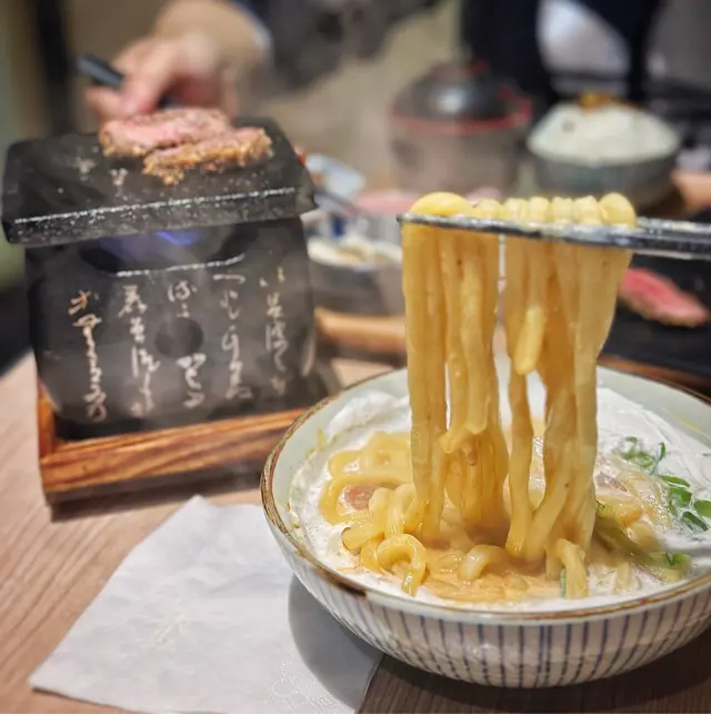 ,厚厚的白滑忌廉,煙韌彈牙的烏冬😋,香滑美味👍🏻。 吉列牛定食🍱~ 有幾款開胃前菜~沙律菜🥗、蕃茄仔🍅和麻醬豆腐🧈, 還有麵豉湯🥣和飯🍚。 餐廳提供鐵板火爐, 外脆內嫩的口感,配上沙律醬和芥末, 提升牛肉的味道。 蜂蜜菊花茶🍹~ 清熱又滋潤的蜂蜜菊花茶, 熱飲都不錯。 紫薯latte🥤~ 紫色賣相特別迷人,面層幼滑的忌廉, 襯托香濃的紫薯味, 甜度剛好。每次到餐廳必點吉列牛和忌廉烏冬, 水準依然好☺️👍🏻。…Read More