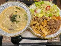 雜菌炒牛肉定食,轉鯛魚湯烏冬 $83
