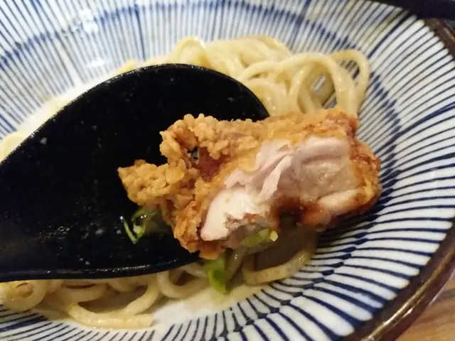 幼麵夠彈牙,鍾意食硬麵嘅我都覺得佢個口感唔錯。果次外賣唔敢食炸雞,怕外送到屋企會好腍。今次堂食終於有機會試,果然炸得非常乾身唔多油。最重要係入面嘅雞肉仍然好嫩滑多汁,選位唔會太多肥膏,咁既價錢有咁大隻既四件係超級抵食