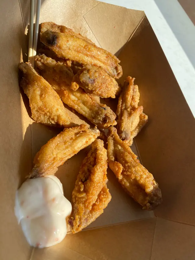雞翼炸香,新鮮熱辣上枱,吃時燙口。咬開juicy惹味