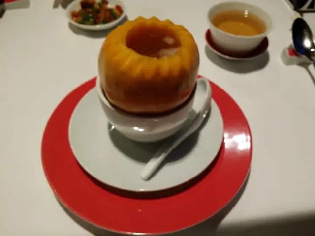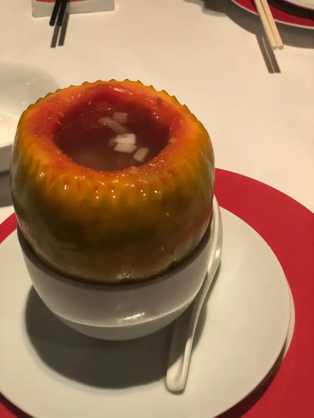 今日係朋友介紹之下走左去「凱悅軒」嘆中菜,平時只係間唔中去隔離既Chin Chin Bar飲野,經過「凱悅軒」都未有機會試,今晚終於有機會🤩環境唔洗講,乾淨企理,地方都好闊落,服務員都非常有禮貌👍🏻食物方面,叫左「四寶燉萬壽果」、「雲腿玉簪蝦球」、半隻「脆皮茶香雞」同埋「雙菇魚湯鴛鴦米」。「四寶燉萬壽果」:😉😉😉😉😉只能夠講依個湯係必點,佢貴係有佢既原因,湯好足料,食到好多蟹肉,湯都好鮮甜,飲完個湯記得要一定一定食埋啲木瓜肉去,平時唔係點食木瓜既我都將啲木瓜肉清得一乾二淨,好甜既木瓜肉🤤「雲腿玉簪蝦球」:😉😉反而本身好大期望既蝦球就有啲失望,雲腿係切到細粒到完全唔覺有雲腿咁,係間唔中先食到咸咸地既味,蝦球因為雪藏蝦既關係,都係無咩味。「脆皮茶香雞」:😉😉😉😉😉茶香雞都係必點,上菜既時候已經聞到陣煙燻既味,食落雞皮都好脆,加埋佢酸酸地既醬汁成碟都好惹味。「雙菇魚湯鴛鴦米」:😉😉😉個人覺得不過不失,魚湯比想像中淡左啲,菇味都唔夠香,不過中意食返清清淡淡啲既朋友仔可以叫依個。個人評分(滿分為5)味道:😉😉😉😉環境:😉😉😉😉😉員工友善度:😉😉😉😉😉CP值:😉😉😉😉…查看更多