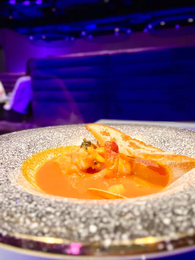 之前去過尖沙咀星空主題餐廳基地貳🌌印象好深刻,環境令人彷如置身太空🪐🌘食物質素亦吾錯。今次黎到同集團嘅基地叄,環境系紫色為主💜充滿科幻兼型格感覺👽食物更高質❣️✿ 基地海鮮湯 $98用餐廳名命名相信系招牌菜之一,海鮮湯酸酸甜甜,吸收曬各種海鮮精華味道👅有帶子、大蝦🦐魷魚🦑法包沾上海鮮湯更美味。✿ 玻璃紙焗比目魚 $228比目魚魚肉軟嫩,汁水充足,入口鮮香。烤焗方式相對傳統煎煮更加均勻,魚肉入口更加綿軟。玻璃紙防止魚汁散失,味道更有油香👍🏼檸檬味🍋清新解膩。✿ 煙燻M8和牛腹肉 $328現今有吾少菜式開始用創新做法去製作,令牛肉口感更香濃,同時保持滋味。M8和牛夠高級,牛腹肉本身口感實在。✿ 雲呢拿紫薯沙冰 $78餐廳招牌飲品之一,要試試呢。飲品紫色亦同餐廳主題顏色啱啱好一樣😁開頭飲幾驚系死甜,好有驚喜地甜度系好適中,紫薯味非常濃郁😋🍠✿ 白雪公主 $98餐廳有多款自家𝐜𝐨𝐜𝐤𝐭𝐚𝐢𝐥同𝐦𝐨𝐜𝐤𝐭𝐚𝐢𝐥,白雪公主由蘋果、肉桂、𝐭𝐨𝐧𝐢𝐜製成,味道𝐟𝐫𝐮𝐢𝐭𝐲又新鮮,有啲似平時飲嘅水果茶😁…查看更多
