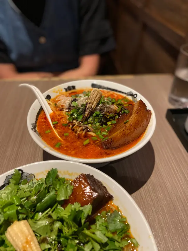 呢間拉麵店隔一排就會有人share,成日都想試下,係日本東京好高人氣~主打麻辣拉麵,嗜辣必到❤️▪️特製麻辣味噌拉麵🌶️$125一黎到就聞到好香麻辣味,辣同麻都可以自選,因為怕太辣,所以揀咗小麻小辣,食落唔太辣,大約係米線店嘅10小辣到,原隻溏心蛋,橙黃色蛋黃😳叉燒夠厚,肥瘦適中▪️增量叉燒辣麻味噌拉麵🍜$120叉燒偏大件,朋友唔食得辣,所以揀咗無辣無麻,食落就係麻油豚骨湯底,幾香,麵底都幾多,唔洗加麵都好飽▪️煎餃🥟$45煎餃有6隻,餃子醋調味唔錯下次要試吓佢哋另一碗好出名嘅芫荽拉麵😌…查看更多