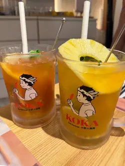 招牌水果茶果然有啲料到,比啤酒杯更大杯嘅玻璃杯,入邊放咗檸檬百香果調製嘅水果茶,杯面仲有一大片新鮮菠蘿覆蓋住,簡直係水果感爆燈。