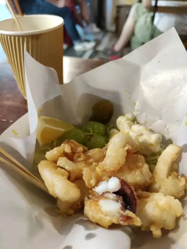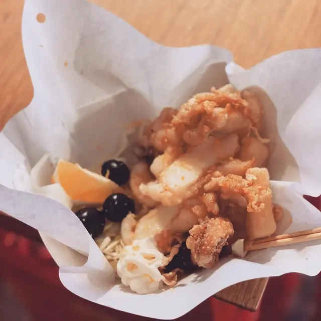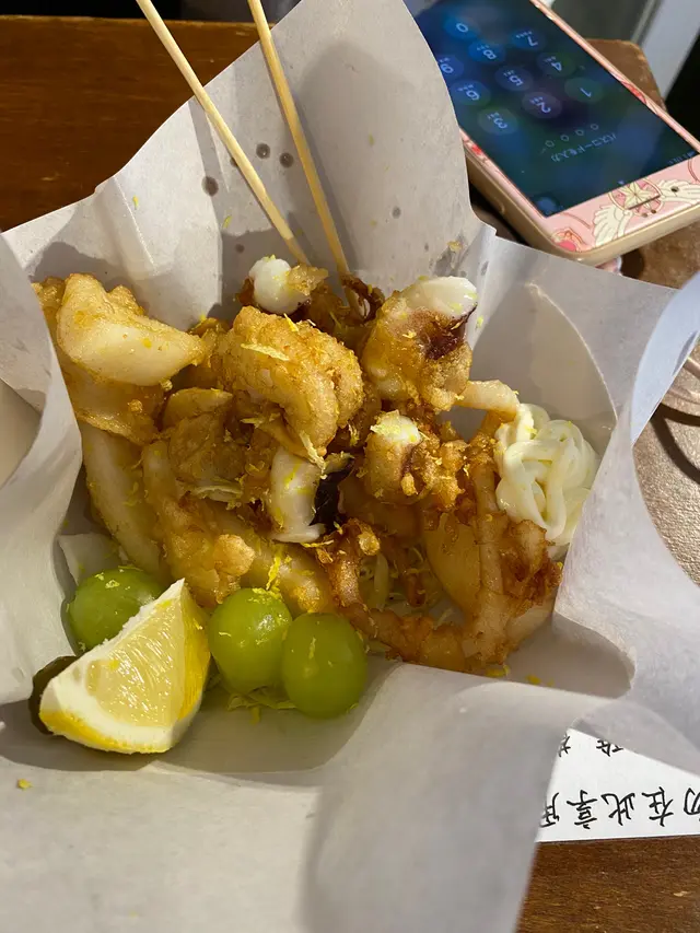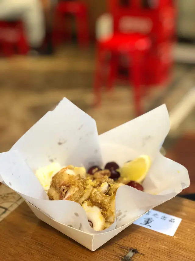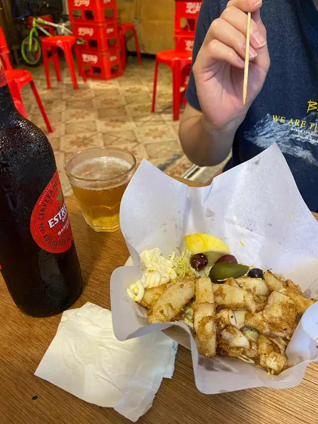 店小小,餐牌食物種類不多,也有自己對食物質素和環保意識的堅持,是間很有性格的食店。店內由老闆兩公婆打理,簡單清晰分工讓小店也能應付大量客人。食物主要新鮮,調味不複雜但又能加強食物本身的鮮。我們一行6人,起初叫了2盤墨魚厚切、2盤日本炸蠔和1盤冰鎮鮑魚和一些凍飲。後來食過返尋味的我們,再追加墨魚厚切和日本炸蠔各一。墨魚厚切($60)(10-12舊)簡單簿粉炸,啖啖鮮墨魚味,旁邊有椰菜絲、提子、酸青瓜和美奶滋,本身炸出來乾身沒太多油粘上,所以不會油膩,但配上酸甜伴菜又吃出另一種清爽感👍🏻👍🏻日本炸蠔 ($60)(5舊)粘上簿麵包糠炸粉,蠔細細但蠔味濃,外脆內軟,外面粉炸之金黃而裏頭的生蠔仍能嫩滑流汁。沒有任何腥味或鞋口感覺。冰鎮鮑魚 ($90)(1隻切片)鮑魚煮至剛熟,再冰鎮切片,肉質軟q不韌,一碟也有10多片。老闆十分好客又善談,送了不少啤酒給我們🍻