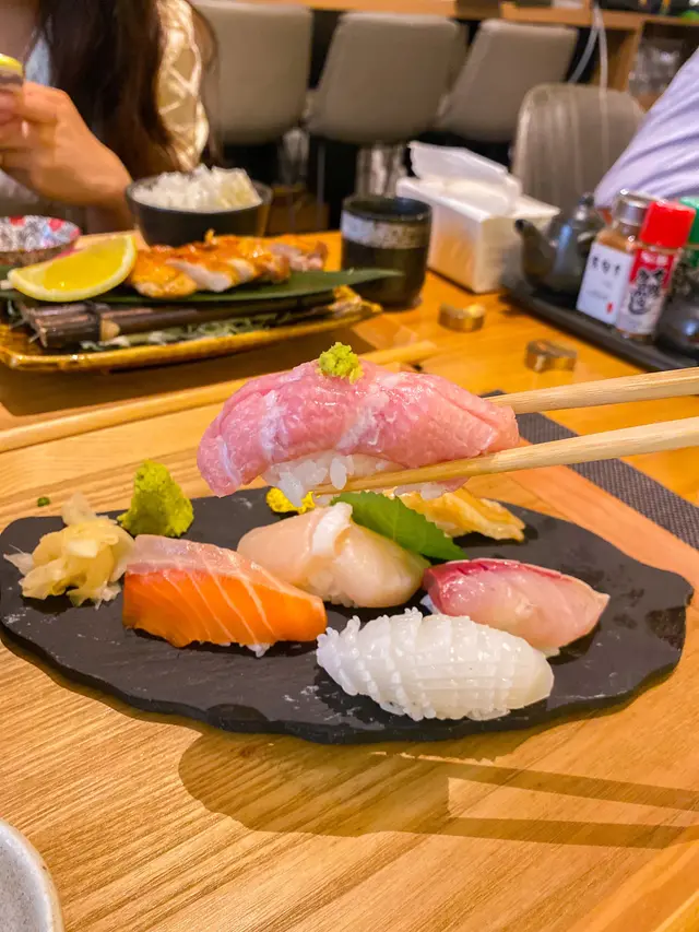 今日lunch特登去銅鑼灣搵friend食飯,我話想食日本野,於是佢就帶咗我黎呢間居酒屋~*壽司定食 $128一共有六件壽司+湯烏冬,今日嘅壽司有左口魚裙邊、油甘魚、三文魚、帶子、吞拿魚、魷魚。食材全部都好新鮮!個人最愛係帶子同埋吞拿魚~帶子超鮮甜好軟嫩,吞拿魚肉質細膩,油脂滿滿🤤湯烏冬用嘅應該係稻庭烏冬,好彈牙,湯底係日式鰹魚湯味~*柚子胡椒雞扒定食 $68配前菜+鹹菜+麵豉湯🍲雞扒外皮煎得好香脆,肉質好嫩,配上柚子汁嘅微酸,令到雞扒冇咁油膩,送飯一流!…查看更多
