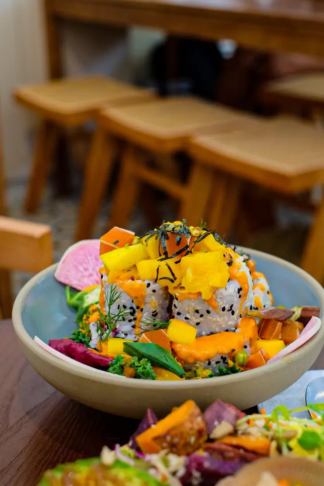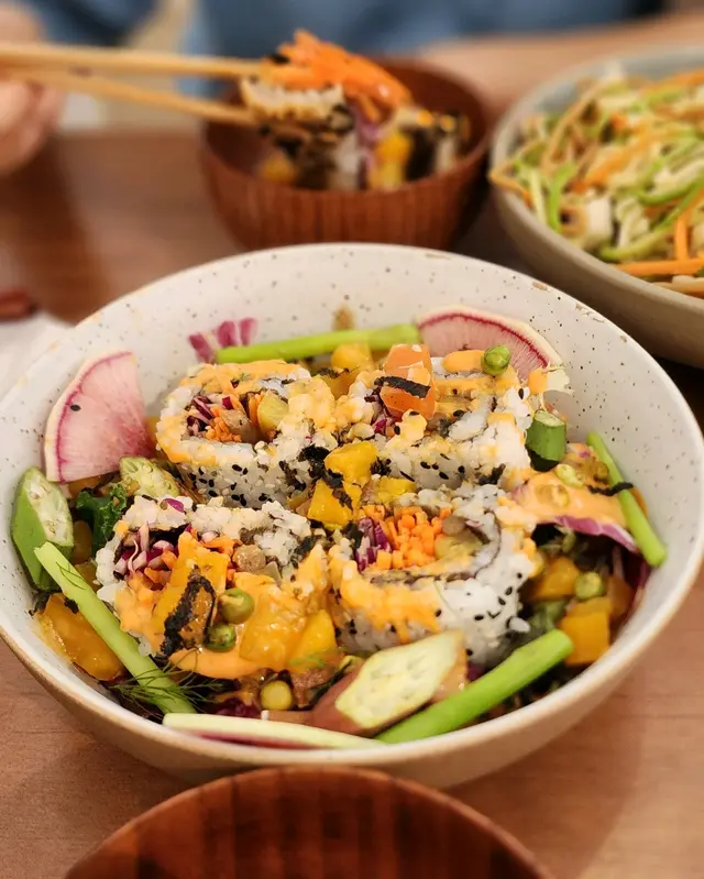 食素嘅朋友有多一個選擇啦🥰位於灣仔藍屋嘅Wanaka係素年嘅姊妹店🌿主打本地農夫嘅蔬果👨🏻🌾1. 煙燻辣味牛油果金柚壽司 $128賣相有心思而且份量絕不吝嗇!😆每件壽司都好大舊,包住紅蘿蔔絲、牛蒡、紫椰菜、蘿蔔漬,淋上自家製嘅辣蛋黃醬,加上秋葵、沙律菜、鷹咀豆脆脆、甜椒,仲有半個牛油果🥑真係滿滿嘅營養🥰2. 夏日三文魚芒果壽司 $128壽司嘅餡料一樣,配搭素三文魚同埋酸酸甜甜嘅芒果,食落好開胃😝配料都有秋葵、沙律菜、紫蘿蔔、蘆筍、紫菜碎,仲有靈魂醬汁千島醬!好滿足啊~😍3. 夏日戀人(巴西莓、藍莓、火龍果、香蕉)$68首先要讚一讚呢度嘅飲品係原汁原味🥹飲得出冇添加糖,只有水果嘅果糖🫐🍌口感綿密之餘又好順滑✨4. 抗氧化能量果昔(抹茶、香蕉、核桃、燕麥奶)$68香蕉為呢杯奶昔增添濃稠嘅口感同天然甜味,仲有抹茶嘅微甘添🍵…查看更多