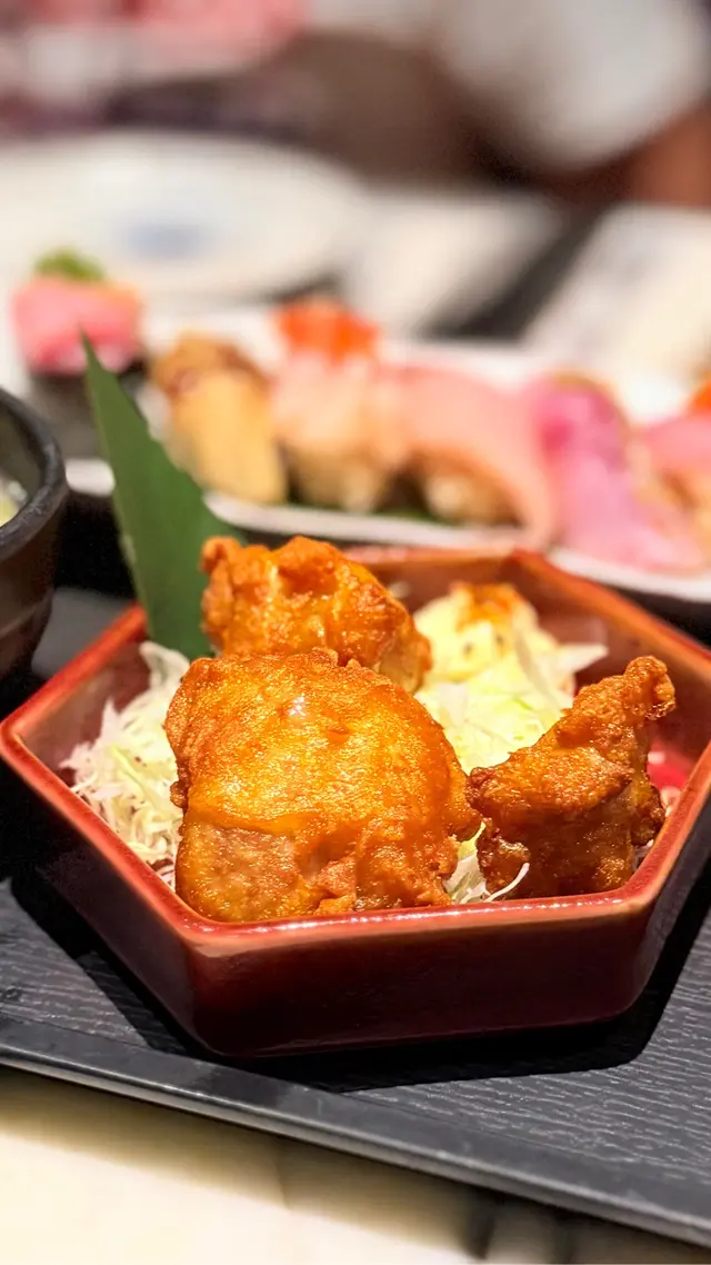 之前食過銅鑼灣分店已經覺得好正,今次試埋佢哋嘅灣仔店。最近呢間嘅畫碟仲爆紅添!!之前食嘅畫碟都冇顏色,而家越整越靚,決定要嚟多次🤭▪️大名 壽司定食 $298壽司有8件,有齊蔥粒吞拿魚腩蓉軍艦、日本帆立貝、海鹽輕燒大拖羅、特大赤海老、汁燒海鰻、油甘魚同兩件師傅特選,刺身鮮甜,套餐包左湯、沙律同唐揚炸雞,好抵食▪️火炙左口魚裙丼 $128左口魚燒到有脆邊帶焦香味,魚肉軟嫩,飯底吸咗魚油味道更豐富▪️鹽燒仙台熟成牛舌芯 $128上次食過覺得唔錯,今次再encore,口感爽嫩,中間仲帶粉嫩顏色,燒得好靚▪️吉列芝心豬扒 $78芝心豬扒都係推薦必點!外層酥脆,唔會炸到好dry,芝士亦有拉絲效果👍🏻▪️北海道海膽軍艦 $85海膽入口甘甜,夠新鮮▪️牛油果軟殼蟹卷 $88軟殼蟹金黃香脆,亦無腥味,正常發揮▪️開心果巴斯克蛋糕$55嗌甜品就可以免費有畫碟,絕對係慶祝生日必點!不過記得要提早兩日預訂✨開心果味同芝士味都幾balance,開心果味濃郁,蛋糕口感幼滑▪️巨峰提子乳酸梳打酒$48生啤都做緊全日半價優惠,不過今次想飲啲甜嘅,就揀咗巨峰提子,果汁感偏重,酒味相對較輕鍾意食龍蝦或者象拔蚌刺身都有半價!好抵食!…查看更多