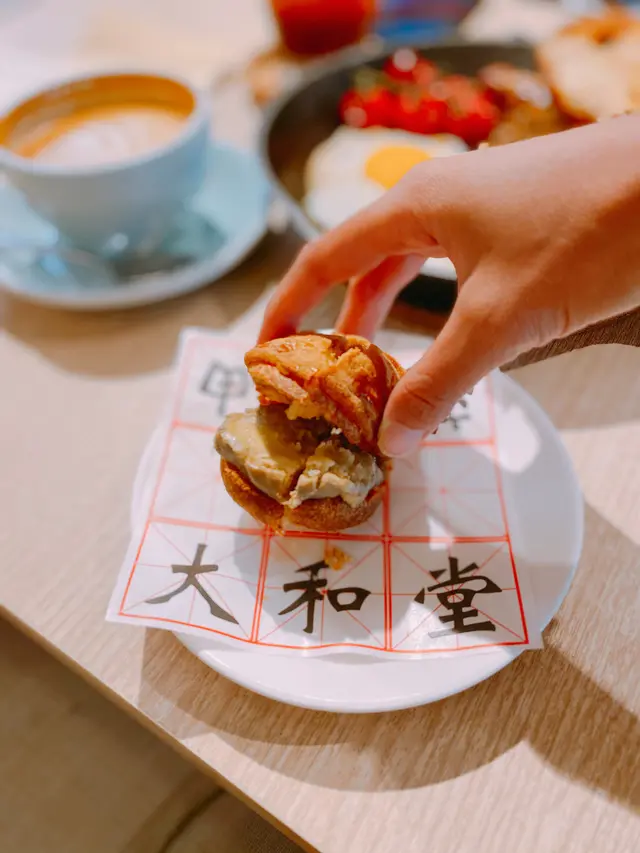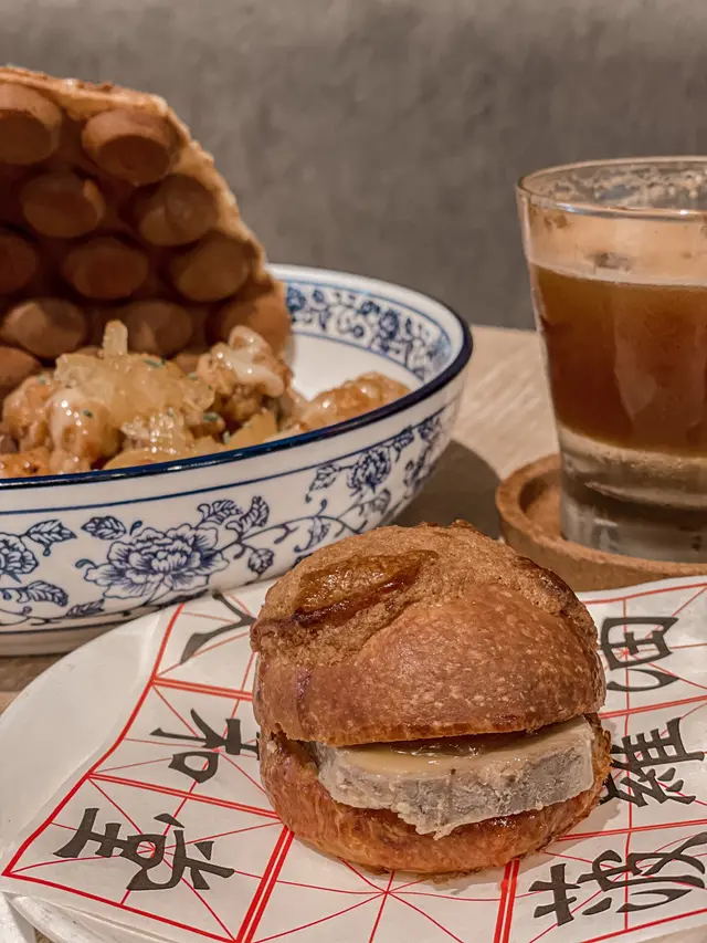 由前身大和堂中醫藥材舖活化 保留左唔少歲月既痕跡百子櫃、牌匾、木椅 彷彿走進時光隧道🕰️✿雞蛋仔與雞 $138 ✿除左店面裝修好fusion之外 食物都好有特色係雞蛋仔同炸雞 食落感覺似炸雞窩夫🧇炸雞大件香脆 啖啖肉醬汁可以揀西檸汁、蔥油汁或者口水雞辣蛋黃醬我揀左蛋黃醬 又幾夾🤣✿ 大和堂聯乘李輝記漢堡包 $168 ✿漢堡有李輝記安格斯牛肉、芝士、焦糖洋蔥、煎蛋咬落去蛋黃爆開 連埋洋蔥既甜味 牛肉既肉汁 滿滿既幸福感湧晒出嚟💦包皮用牛油烘烤過 好香好脆👍🏻✿ 大和堂菠蘿油 $68 ✿最有驚喜 我覺得係必試既!❣️菠蘿包面超脆 每一啖咬落去「嚓!」一聲🤫餡料唔係牛油🧈係鵝肝!😍配埋桂花醬 香口唔油膩細細件 的骰高貴🥹✿ 手沖咖啡 (Brazil Fazenda Guariroba Natural) $40 ✿有幾款豆選擇 可以諮詢barista~依隻巴西豆飲有層次☕✿ 皇牌氣血茶 $34 ✿有桂圓、紅棗、枸杞、玫瑰等等 香氣十足 甘香養生…查看更多
